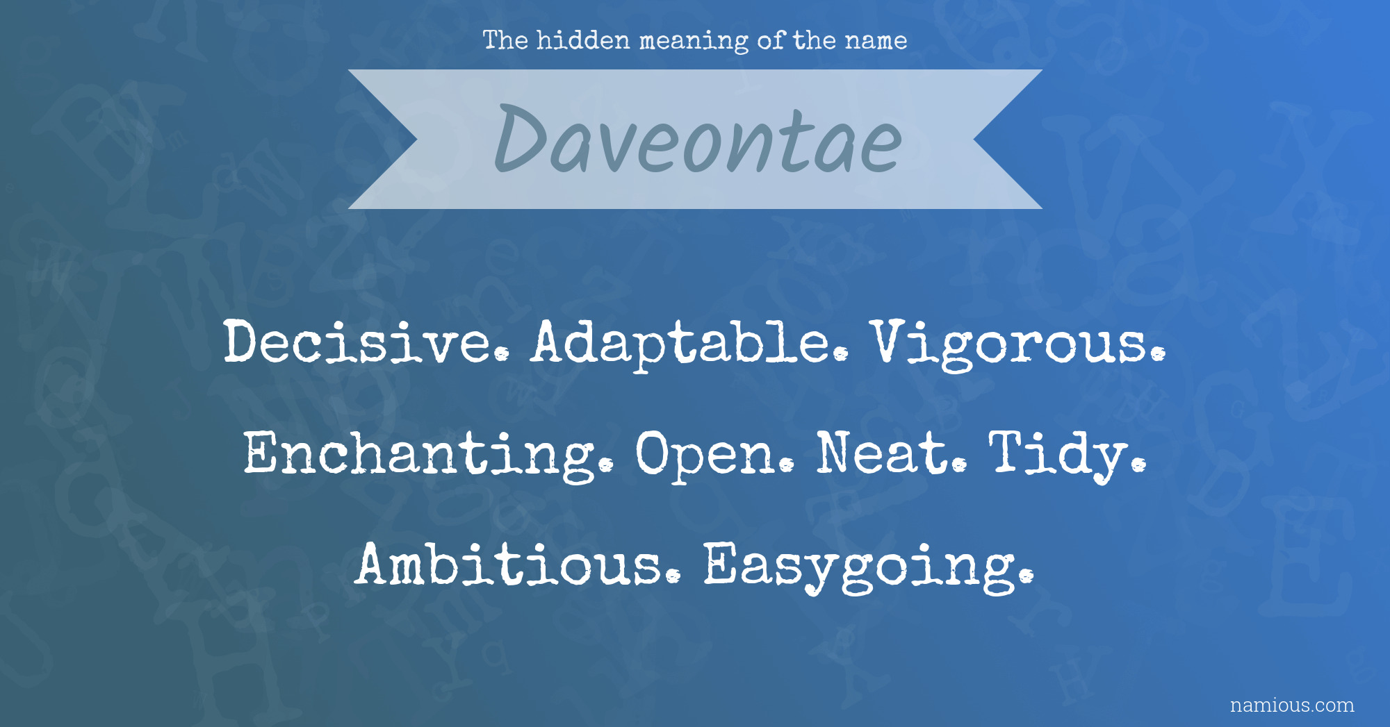 "Daveontae is a decisive, adaptable, vigorous, enchanting, open, neat, tidy, ambitious and easygoing person."