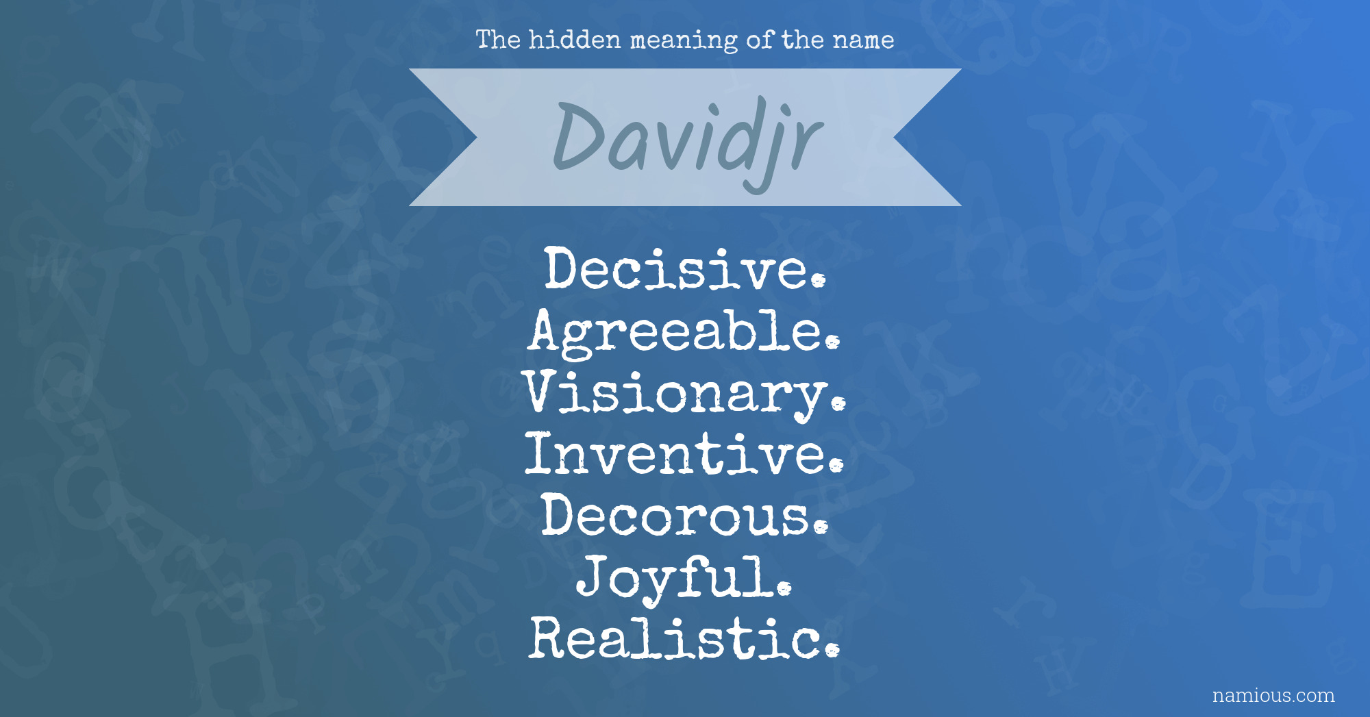 "Davidjr is a decisive, agreeable, visionary, inventive, decorous, joyful and realistic person."