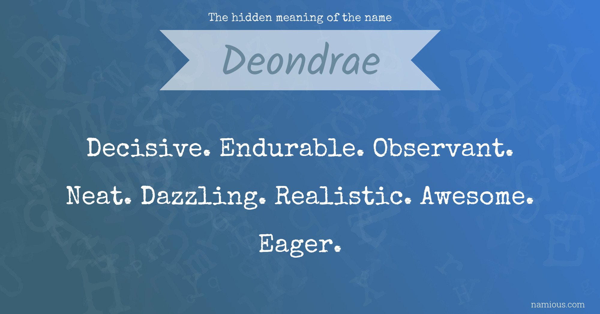 "Deondrae is a decisive, endurable, observant, neat, dazzling, realistic, awesome and eager person."