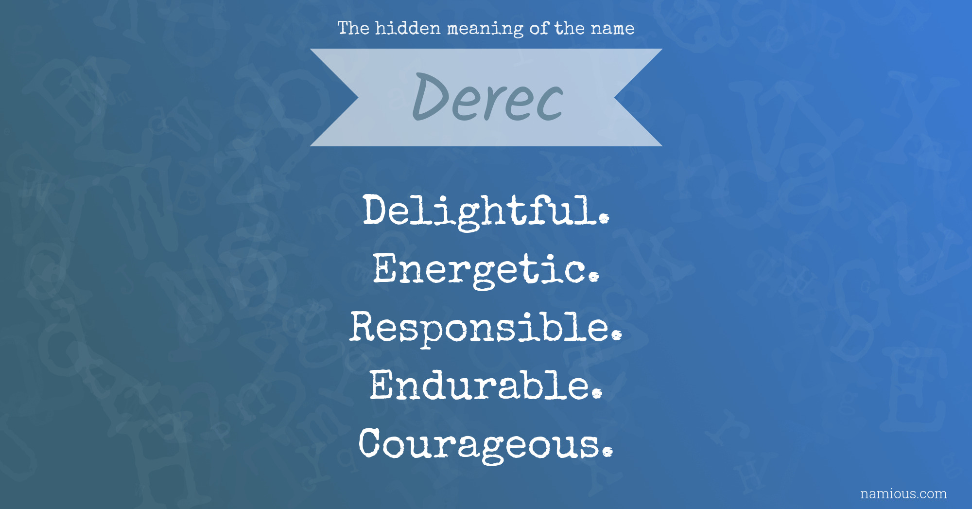 "Derec is a delightful, energetic, responsible, endurable and courageous person."