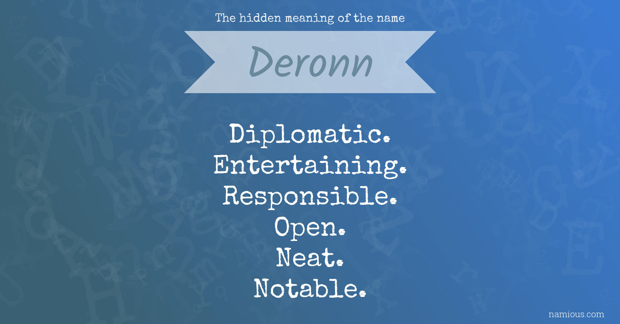 "Deronn is a diplomatic, entertaining, responsible, open, neat and notable person."