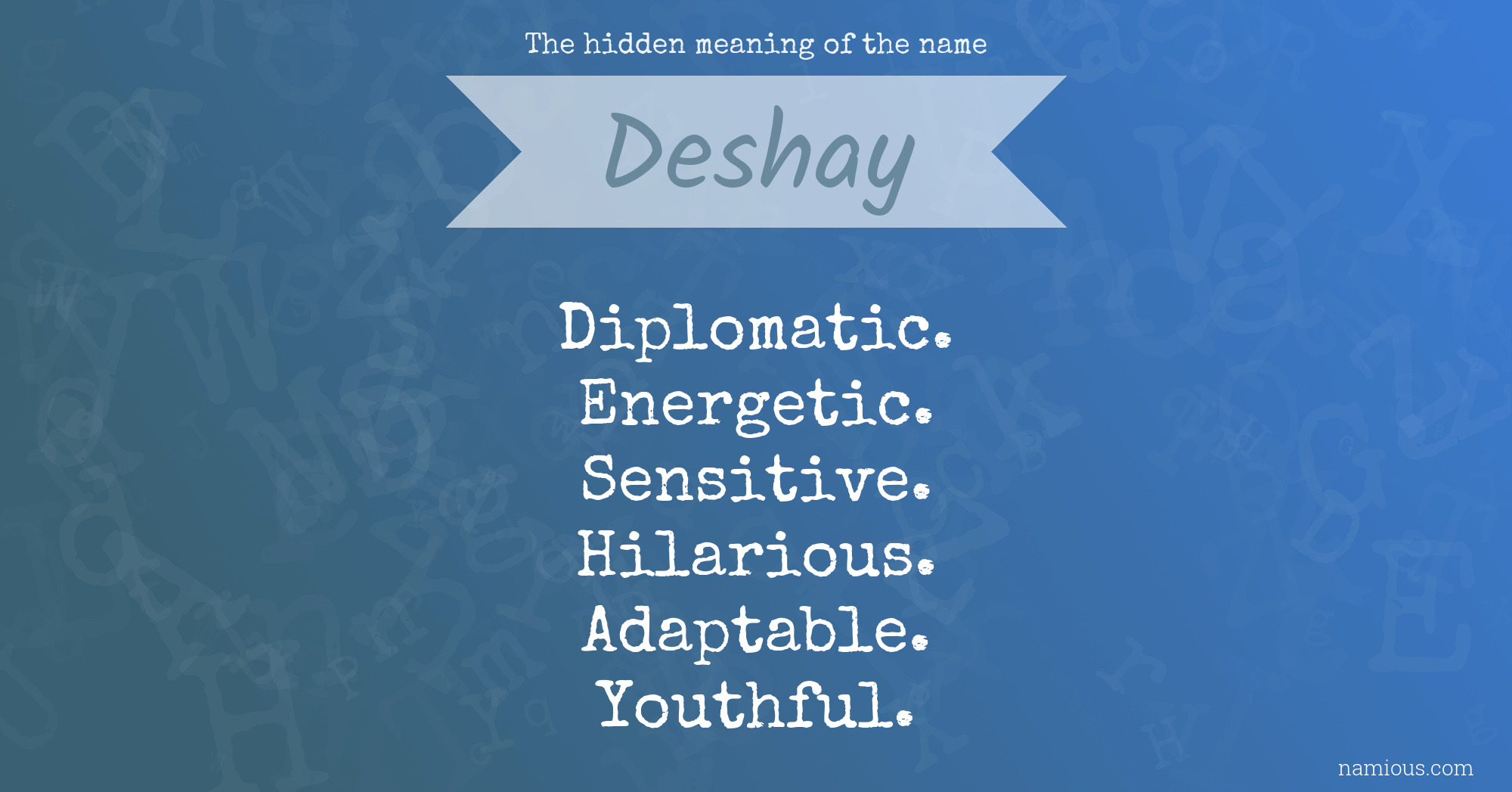 "Deshay is a diplomatic, energetic, sensitive, hilarious, adaptable and youthful person."
