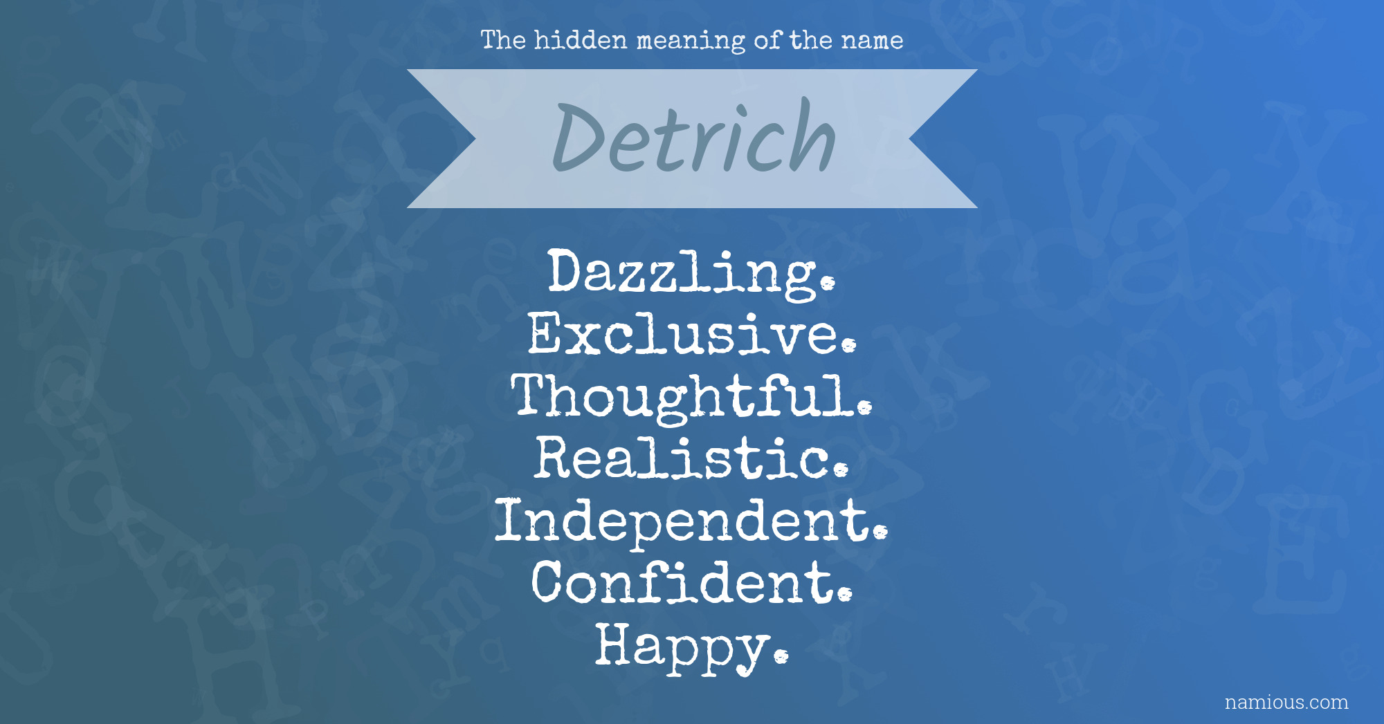 "Detrich is a dazzling, exclusive, thoughtful, realistic, independent, confident and happy person."