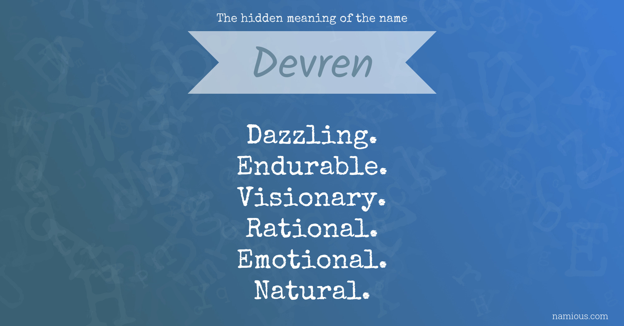 "Devren is a dazzling, endurable, visionary, rational, emotional and natural person."