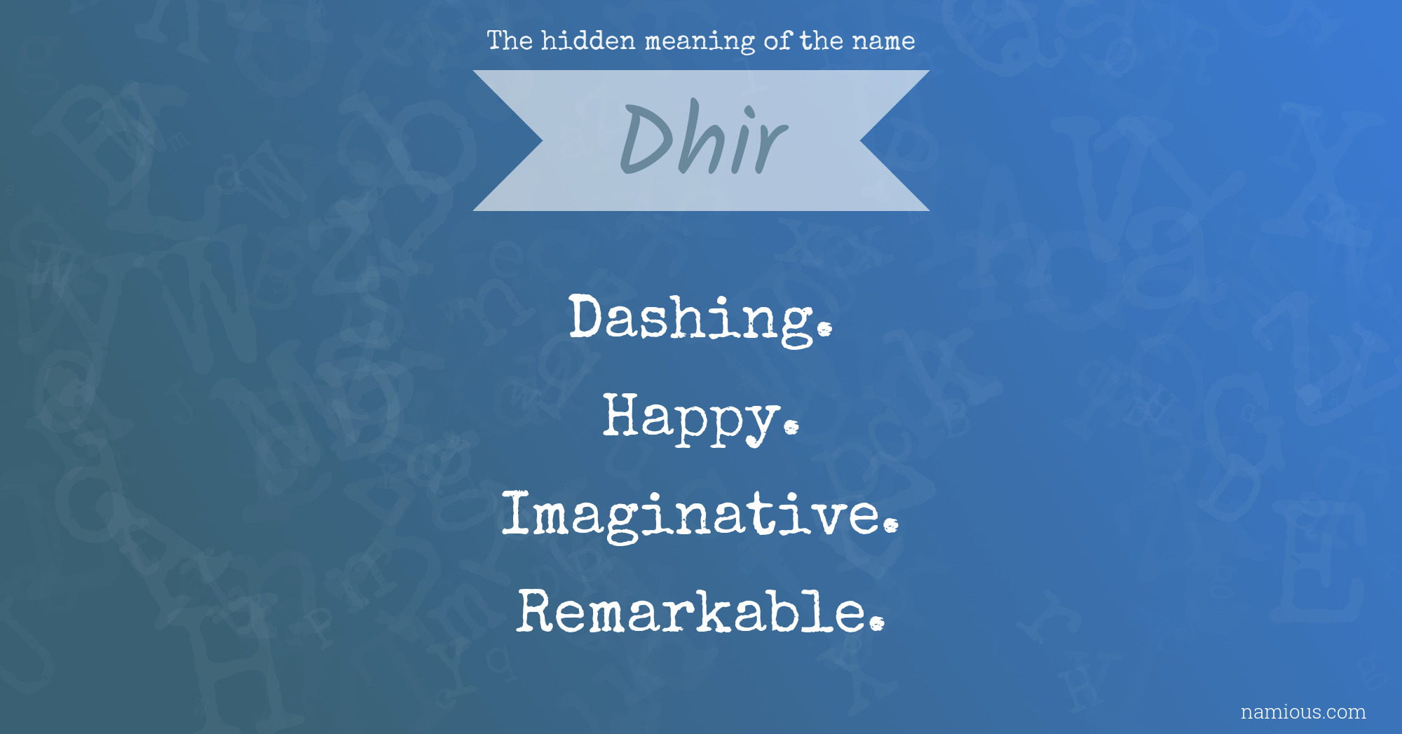 "Dhir is a dashing, happy, imaginative and remarkable person."