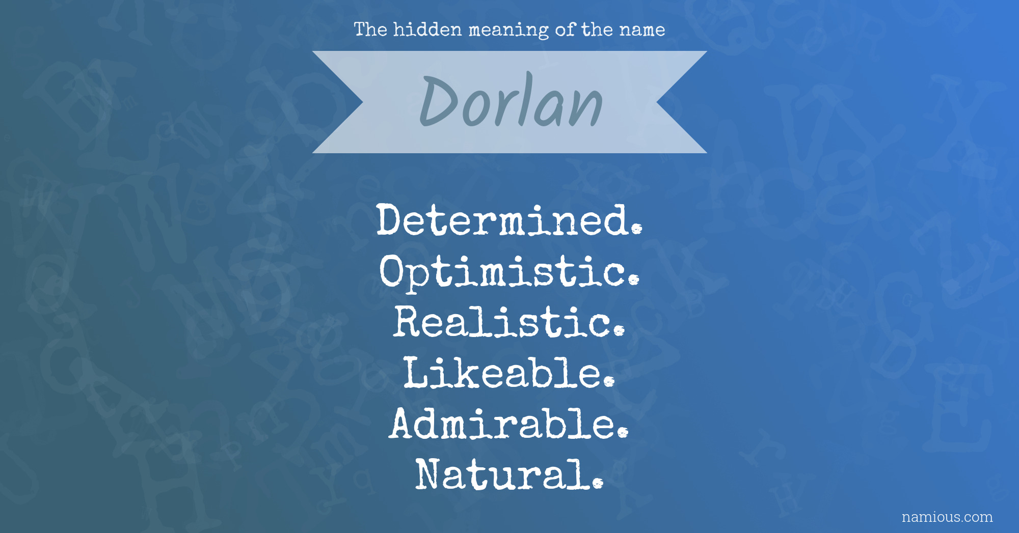 "Dorlan is a determined, optimistic, realistic, likeable, admirable and natural person."