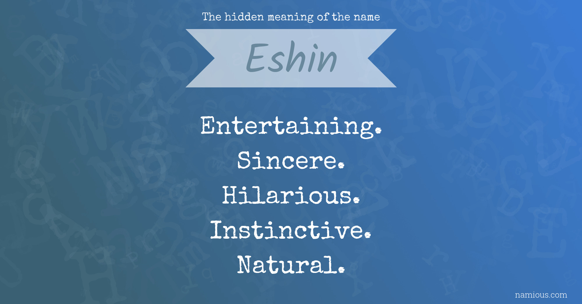 "Eshin is an entertaining, sincere, hilarious, instinctive and natural person."