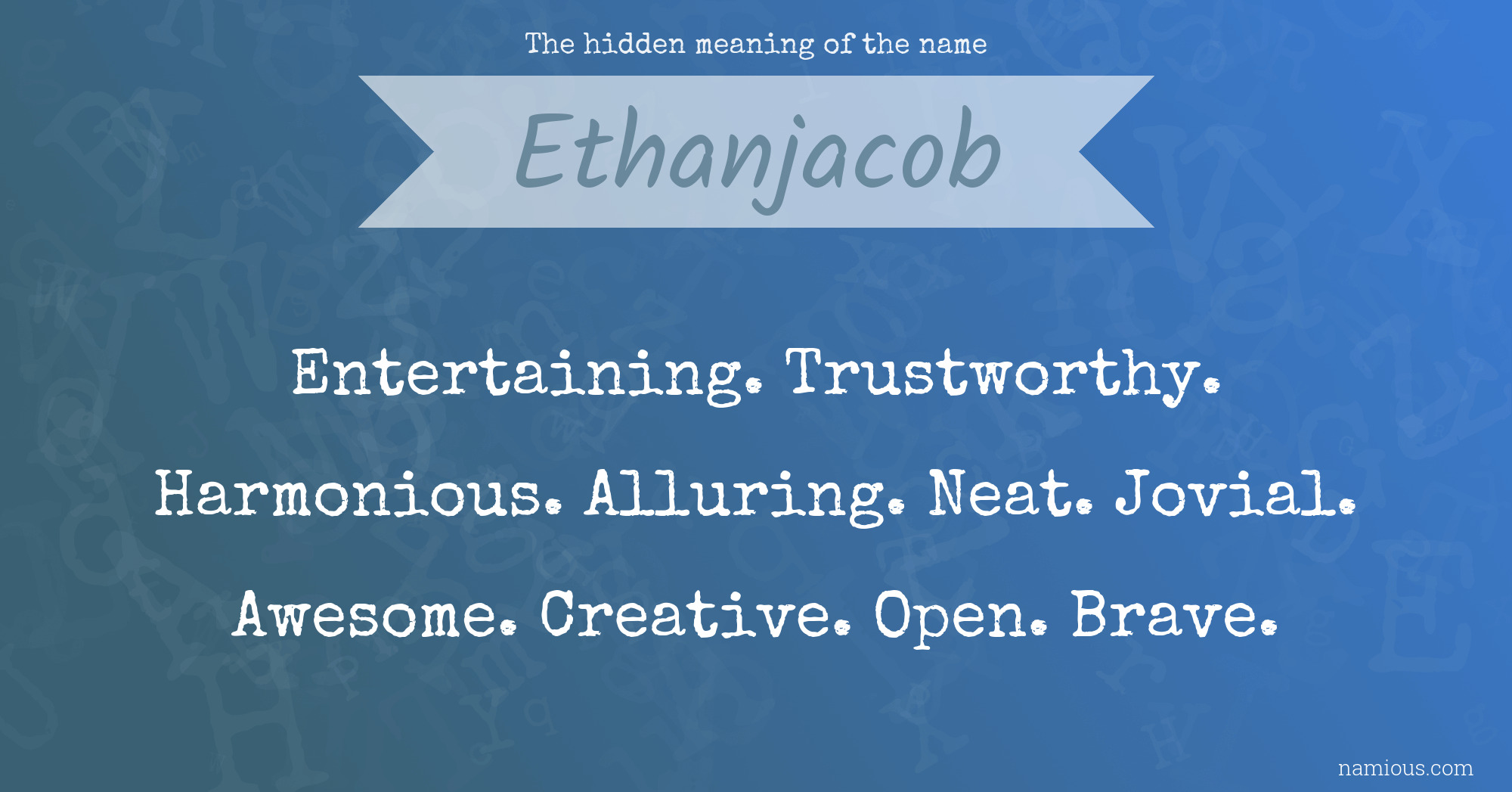 "Ethanjacob is an entertaining, trustworthy, harmonious, alluring, neat, jovial, awesome, creative, open and brave person."