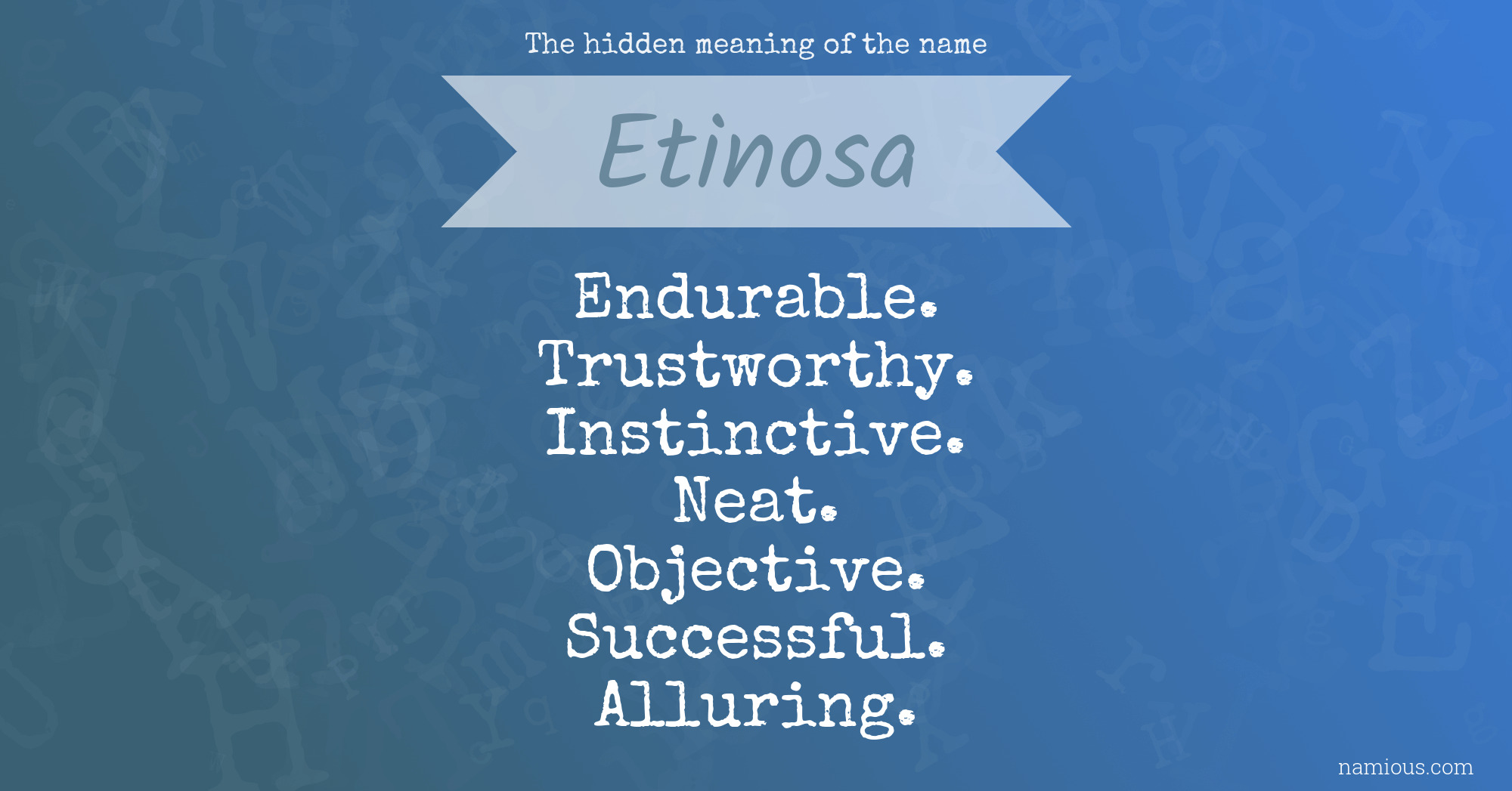 "Etinosa is an endurable, trustworthy, instinctive, neat, objective, successful and alluring person."