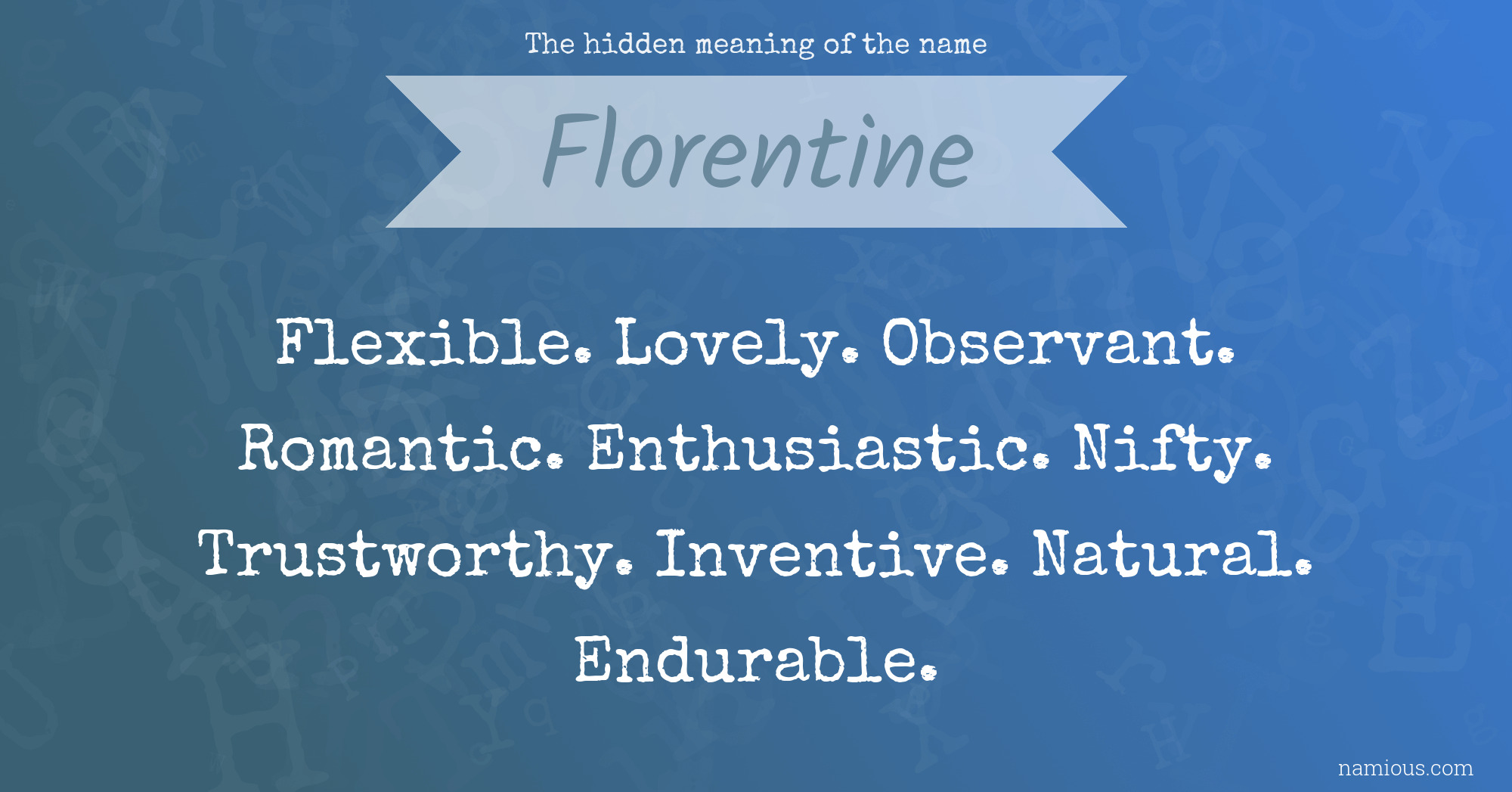 "Florentine is a flexible, lovely, observant, romantic, enthusiastic, nifty, trustworthy, inventive, natural and endurable person."