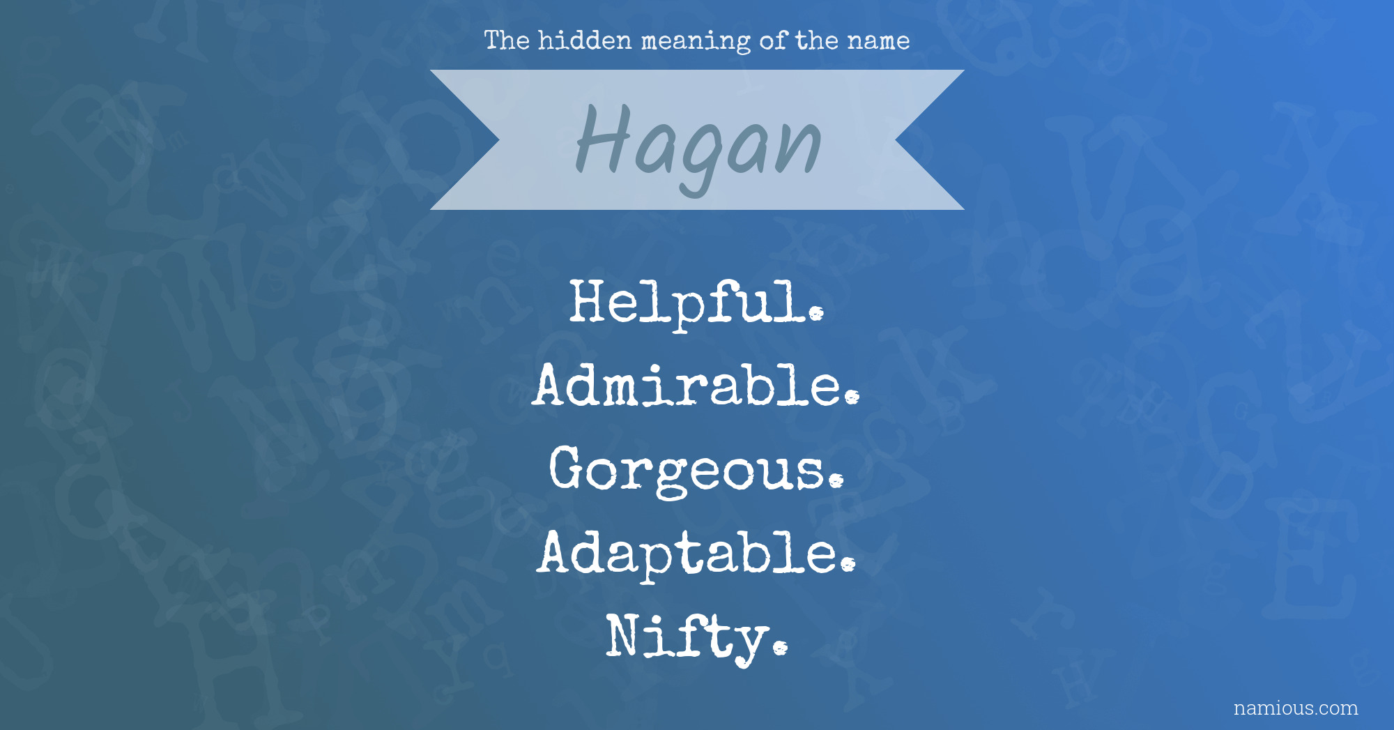 "Hagan is a helpful, admirable, gorgeous, adaptable and nifty person."
