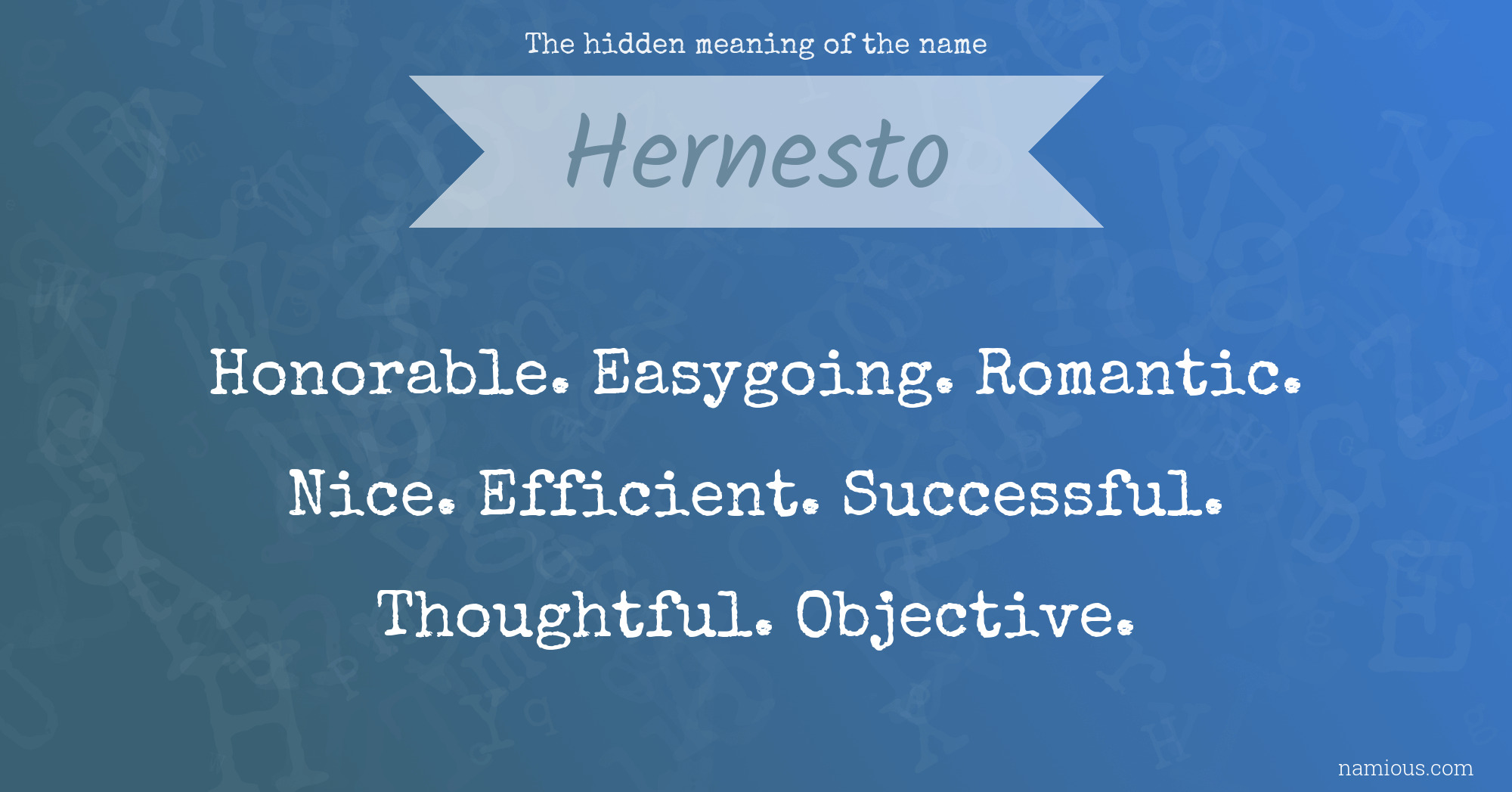 "Hernesto is a honorable, easygoing, romantic, nice, efficient, successful, thoughtful and objective person."