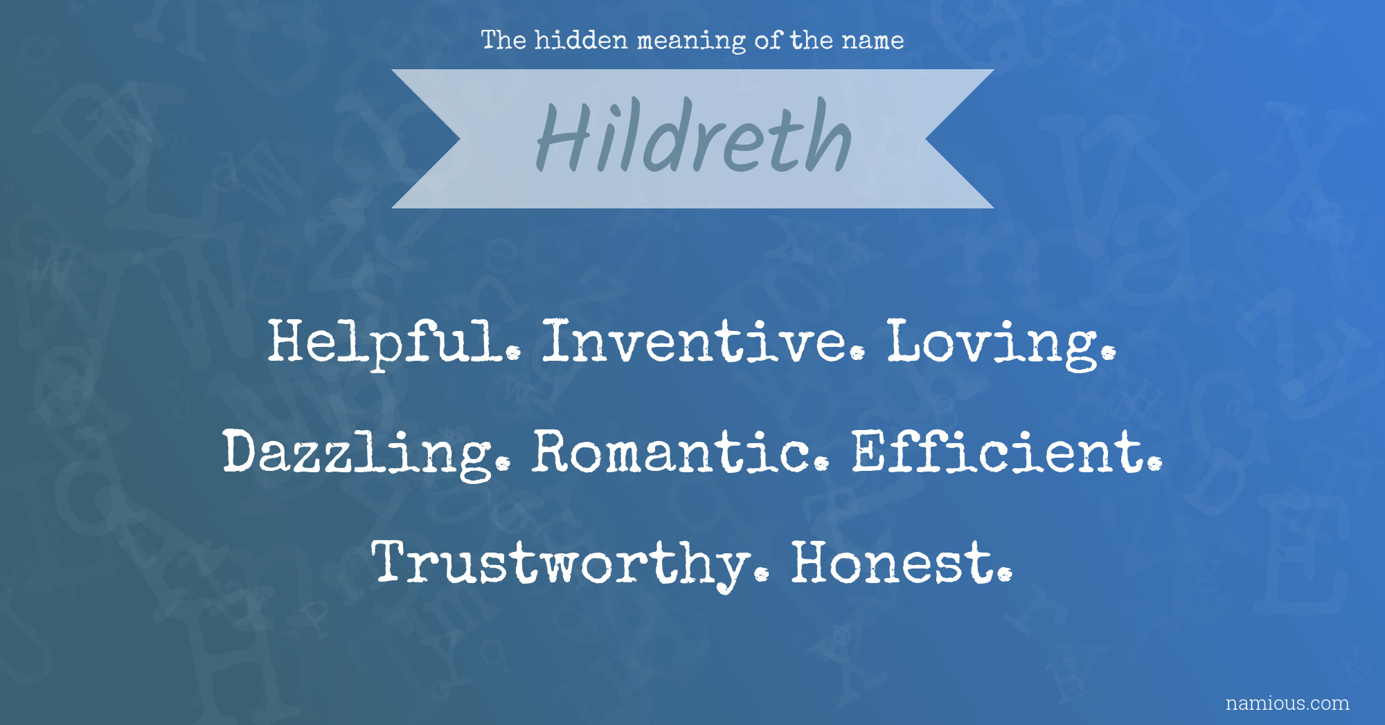 "Hildreth is a helpful, inventive, loving, dazzling, romantic, efficient, trustworthy and honest person."