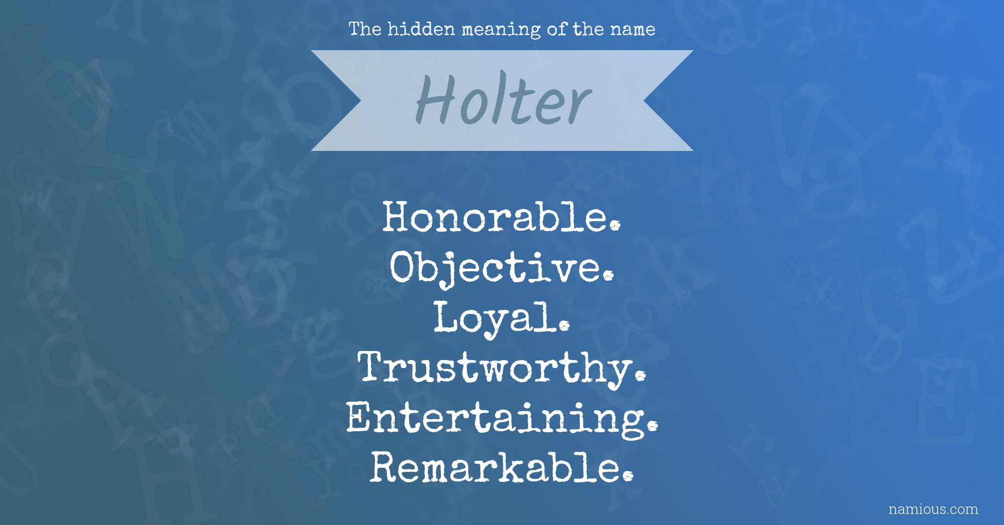 "Holter is a honorable, objective, loyal, trustworthy, entertaining and remarkable person."