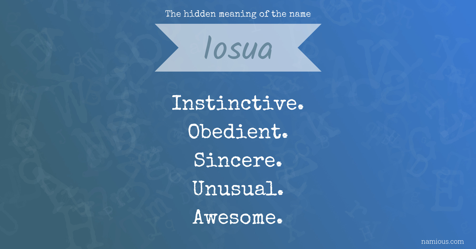 "Iosua is an instinctive, obedient, sincere, unusual and awesome person."