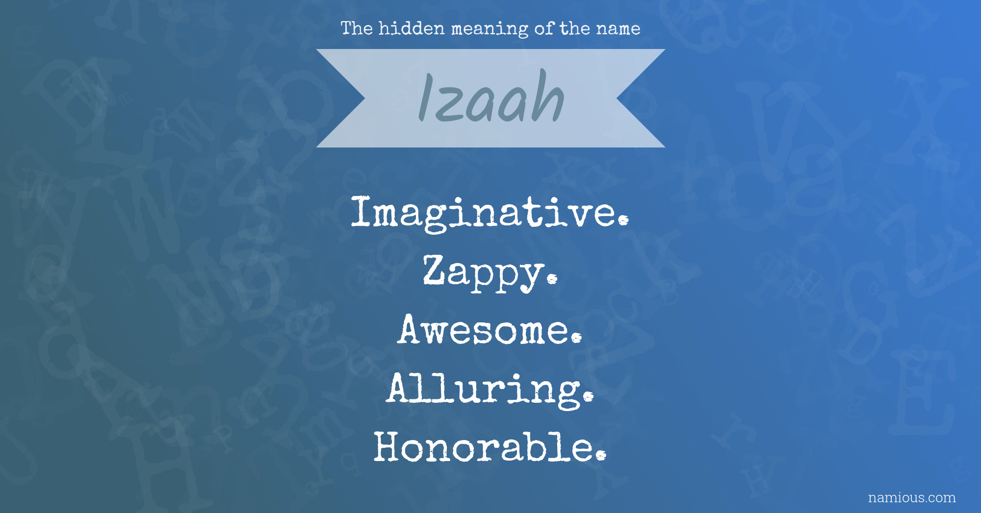 "Izaah is an imaginative, zappy, awesome, alluring and honorable person."