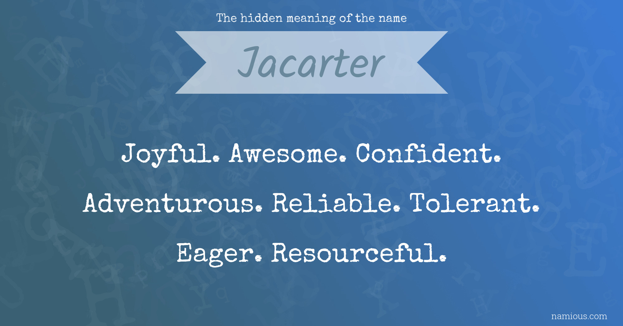 "Jacarter is a joyful, awesome, confident, adventurous, reliable, tolerant, eager and resourceful person."
