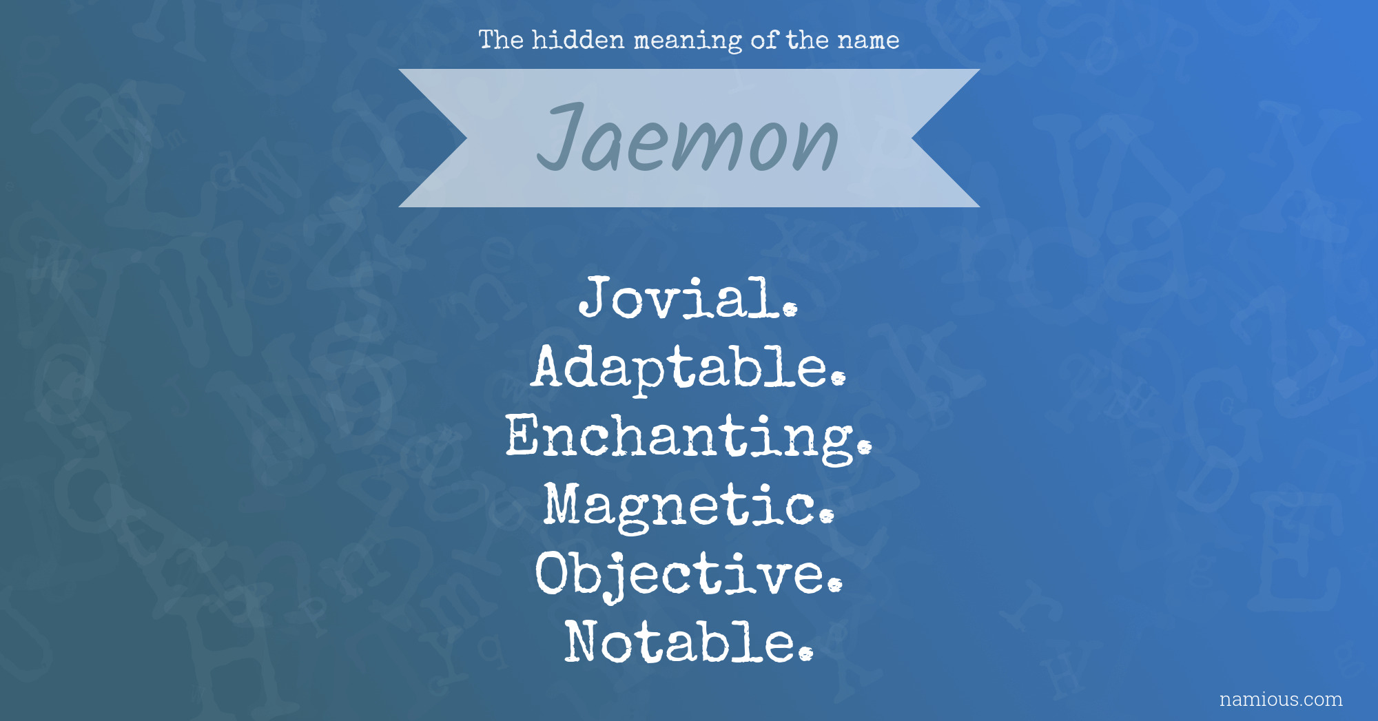 "Jaemon is a jovial, adaptable, enchanting, magnetic, objective and notable person."