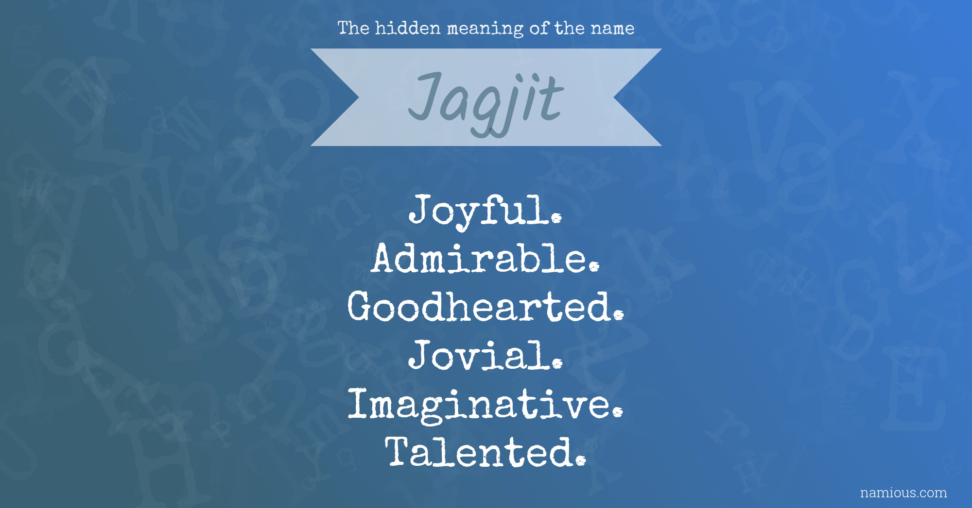 "Jagjit is a joyful, admirable, goodhearted, jovial, imaginative and talented person."