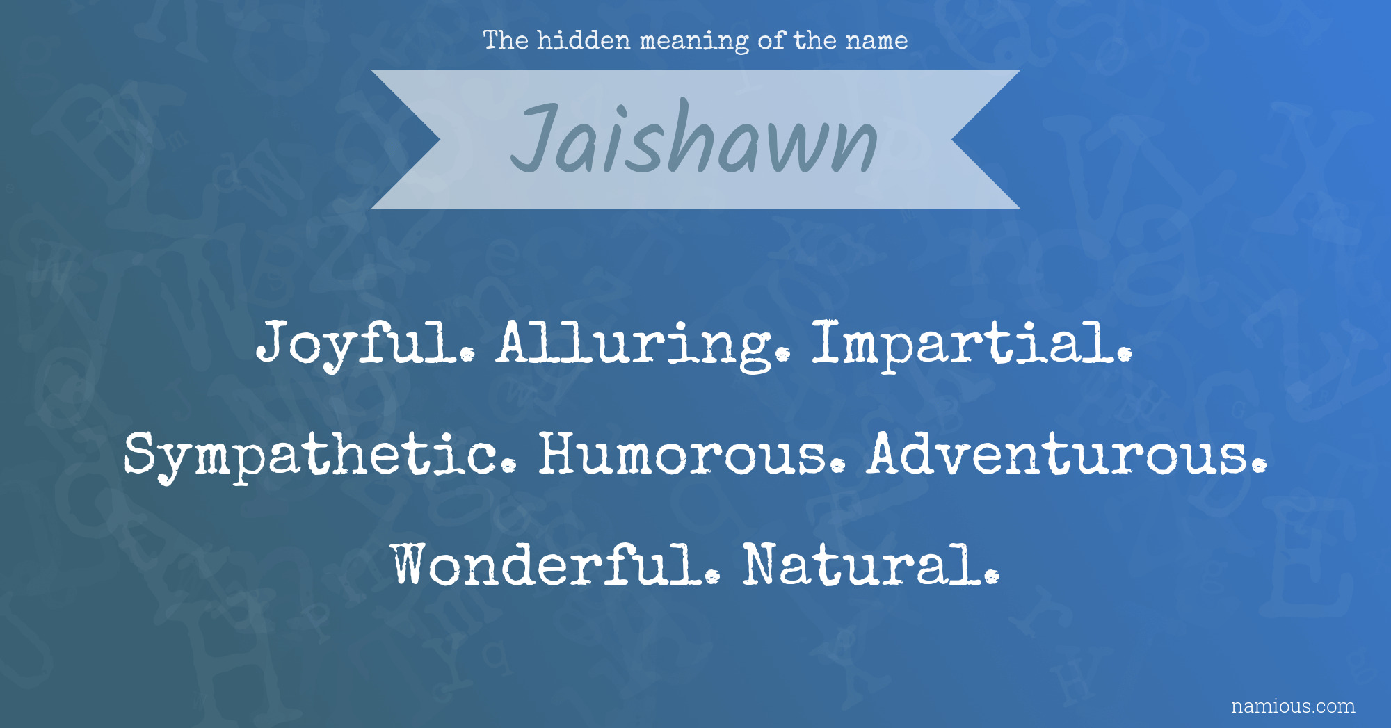 "Jaishawn is a joyful, alluring, impartial, sympathetic, humorous, adventurous, wonderful and natural person."