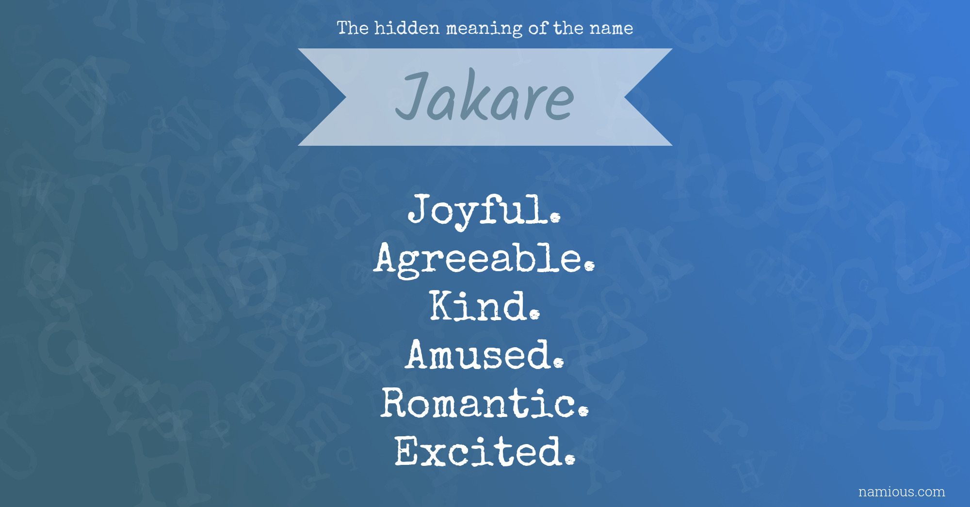 "Jakare is a joyful, agreeable, kind, amused, romantic and excited person."