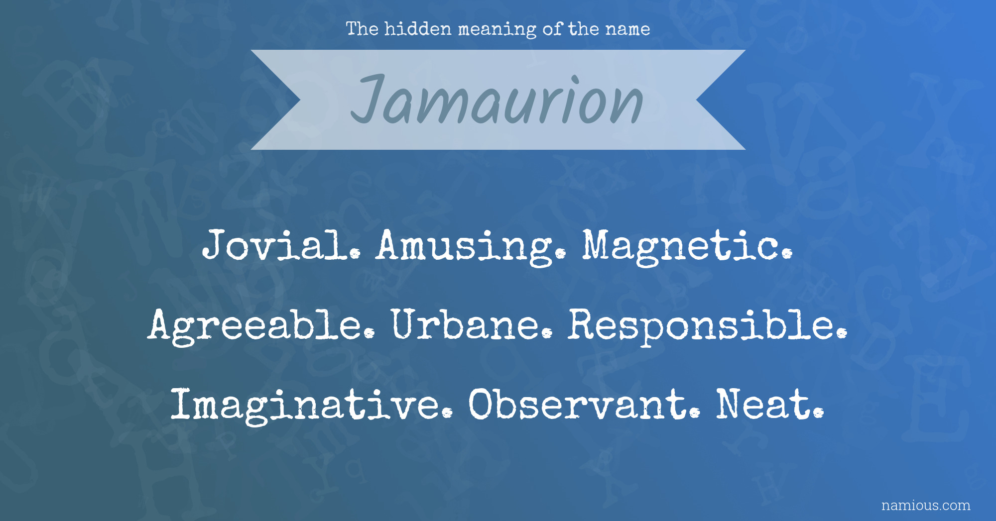 "Jamaurion is a jovial, amusing, magnetic, agreeable, urbane, responsible, imaginative, observant and neat person."