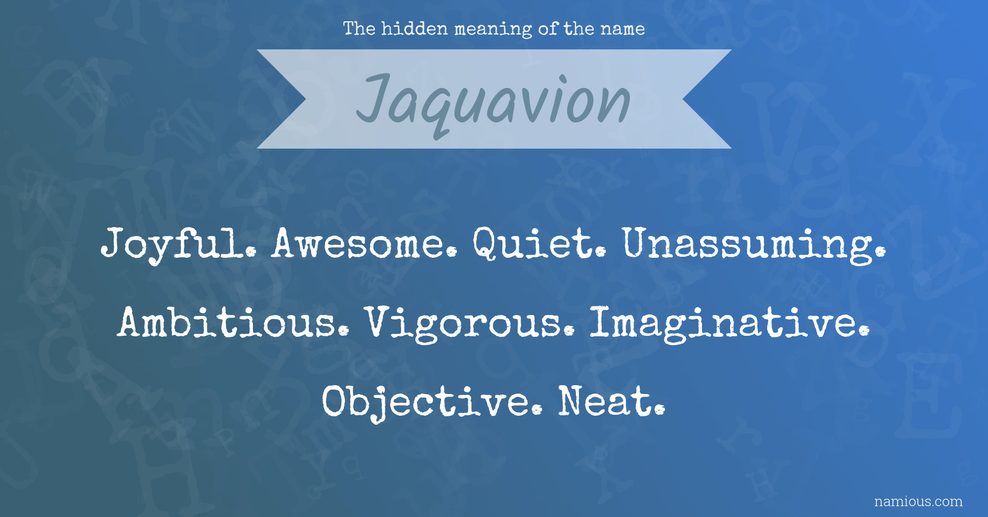 "Jaquavion is a joyful, awesome, quiet, unassuming, ambitious, vigorous, imaginative, objective and neat person."