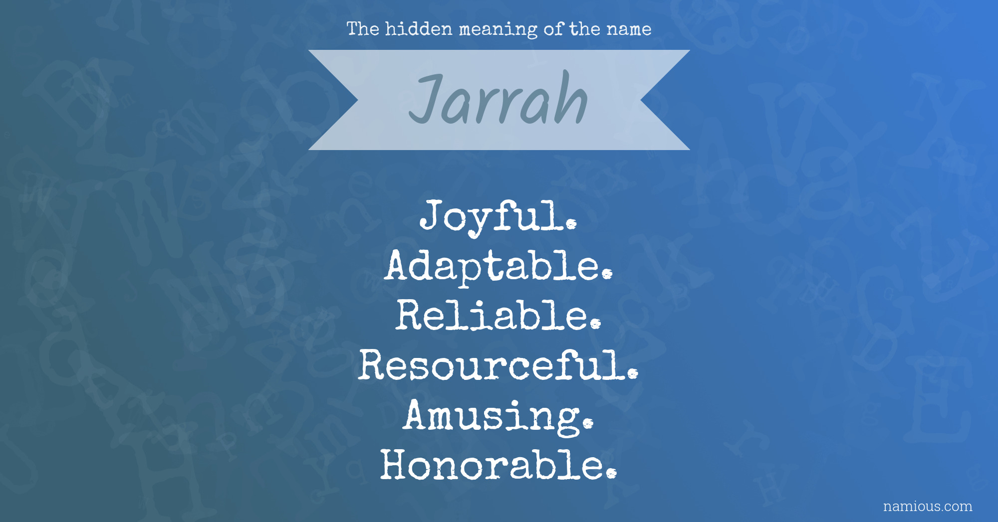 "Jarrah is a joyful, adaptable, reliable, resourceful, amusing and honorable person."