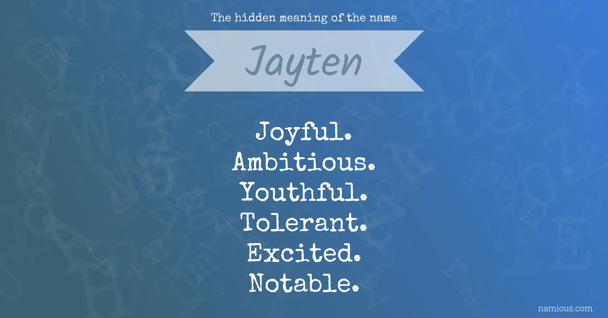 "Jayten is a joyful, ambitious, youthful, tolerant, excited and notable person."