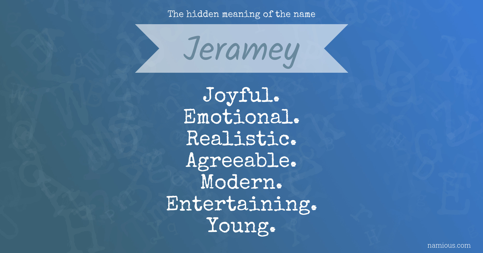 "Jeramey is a joyful, emotional, realistic, agreeable, modern, entertaining and young person."