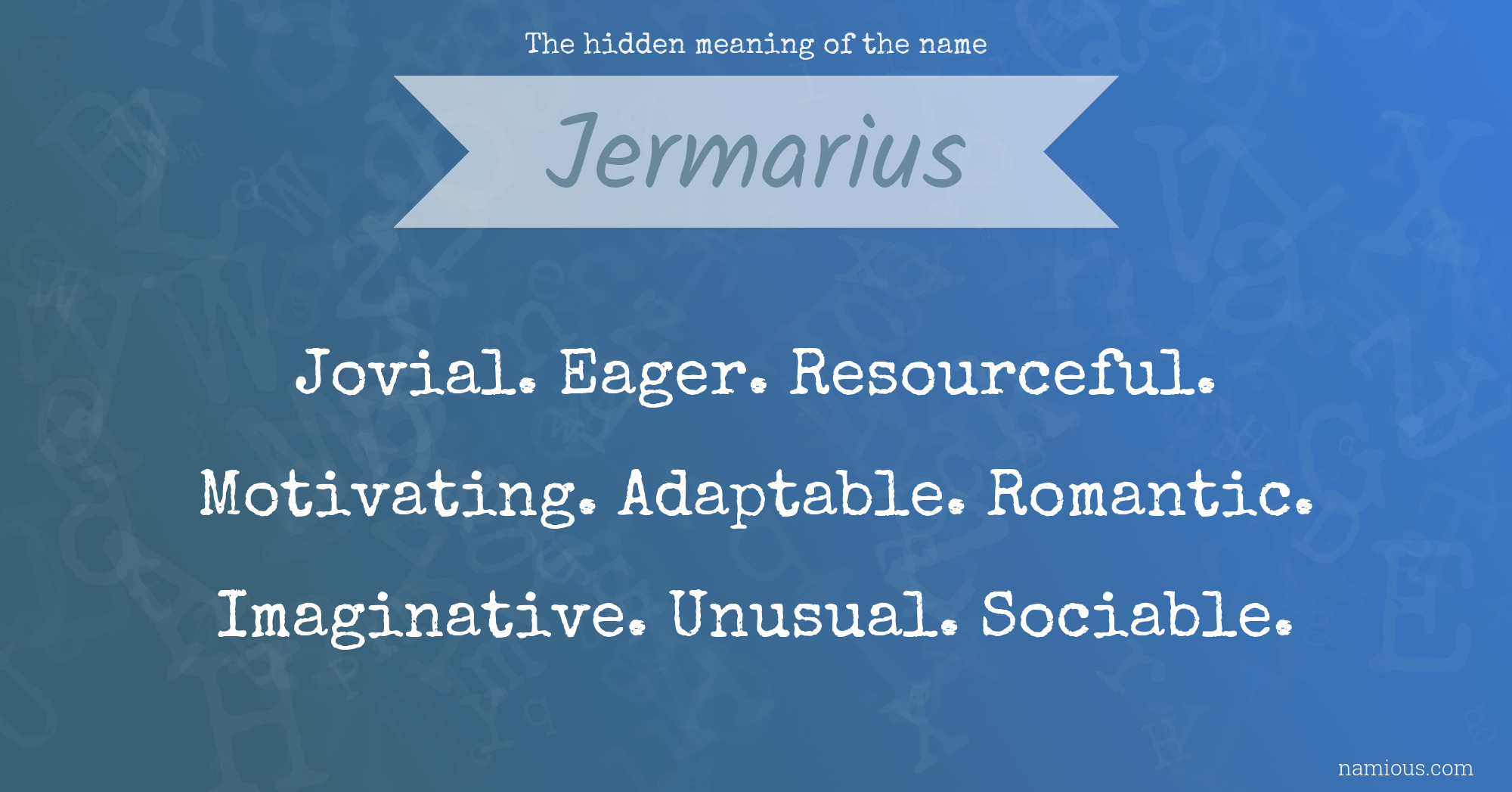 "Jermarius is a jovial, eager, resourceful, motivating, adaptable, romantic, imaginative, unusual and sociable person."