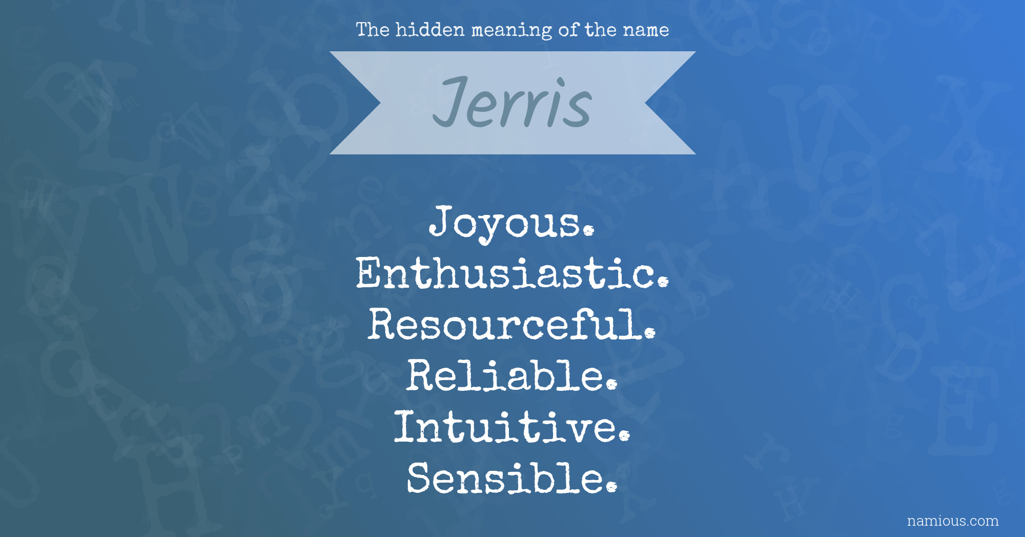 "Jerris is a joyous, enthusiastic, resourceful, reliable, intuitive and sensible person."