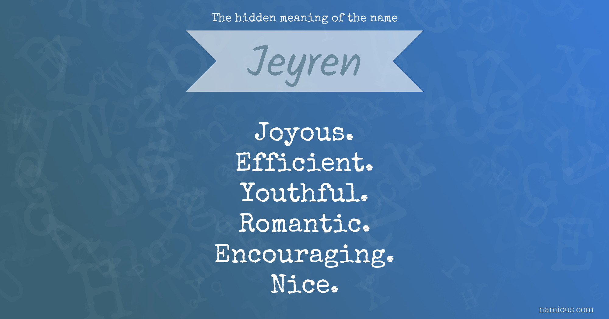 "Jeyren is a joyous, efficient, youthful, romantic, encouraging and nice person."