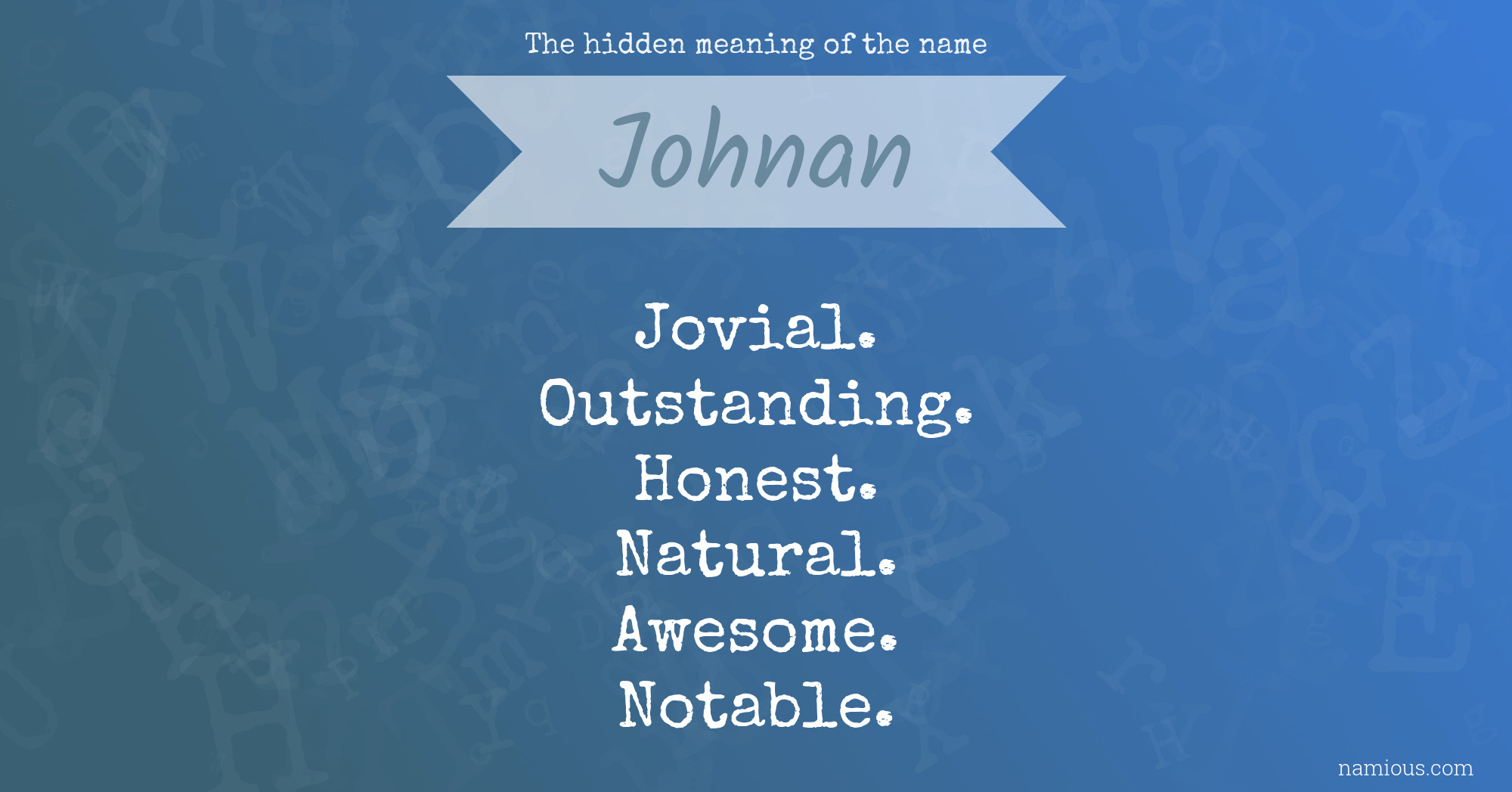 "Johnan is a jovial, outstanding, honest, natural, awesome and notable person."