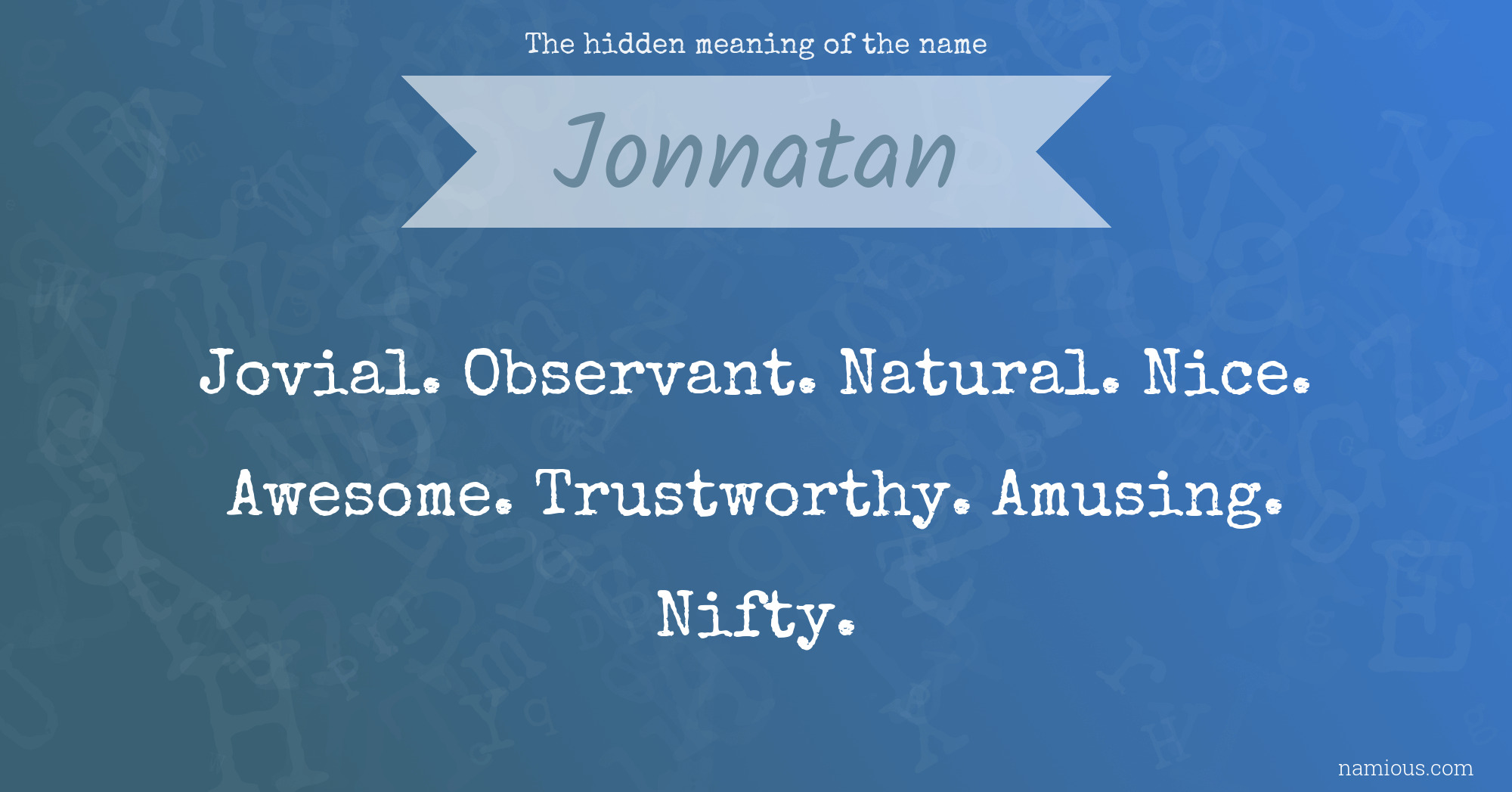 "Jonnatan is a jovial, observant, natural, nice, awesome, trustworthy, amusing and nifty person."
