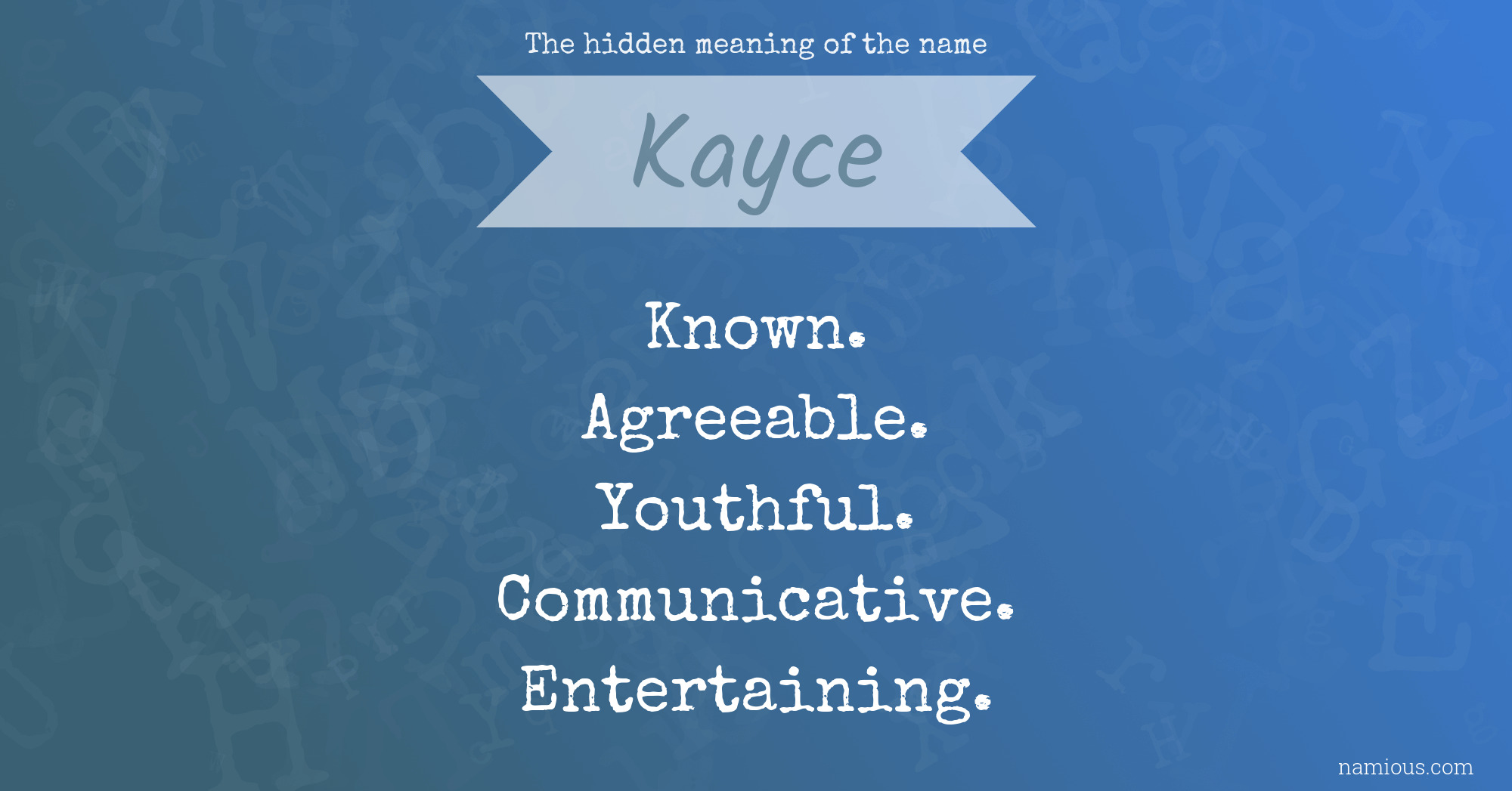 "Kayce is a known, agreeable, youthful, communicative and entertaining person."