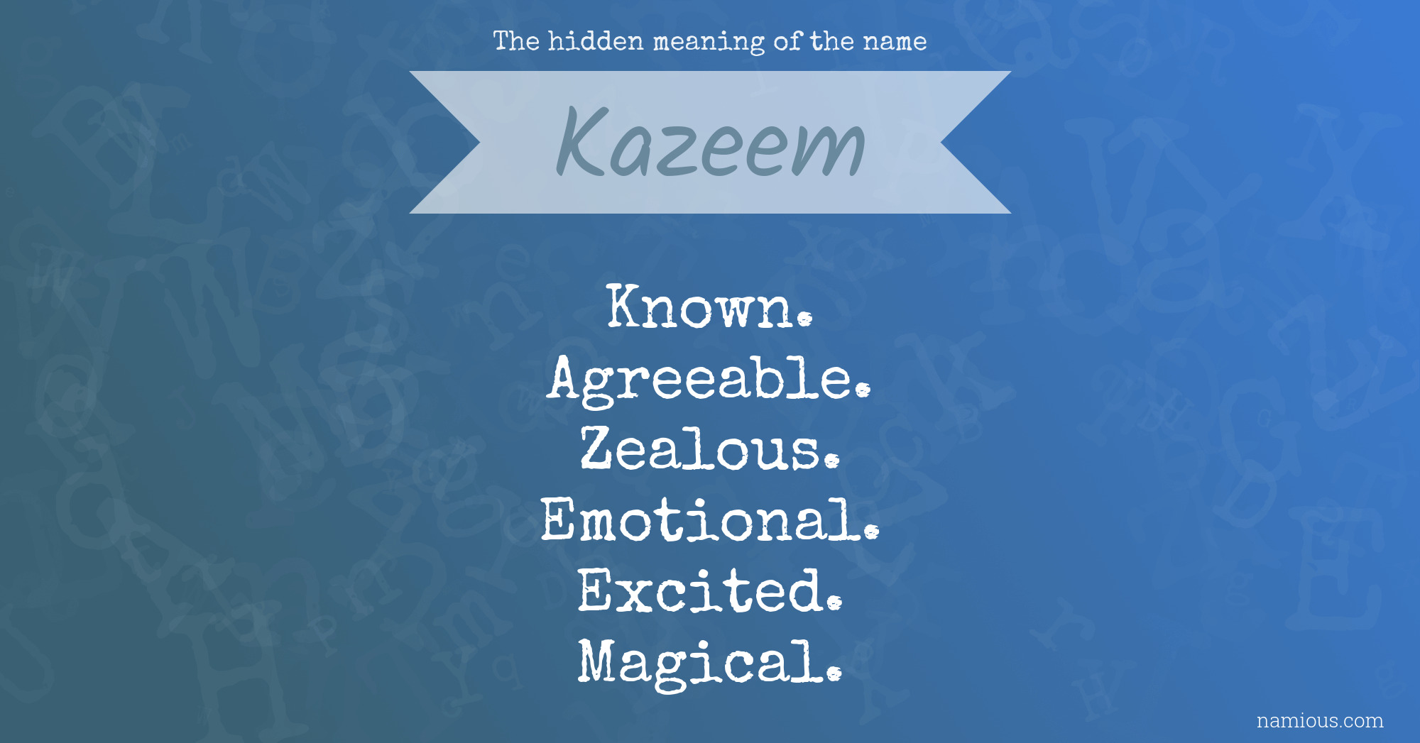 "Kazeem is a known, agreeable, zealous, emotional, excited and magical person."