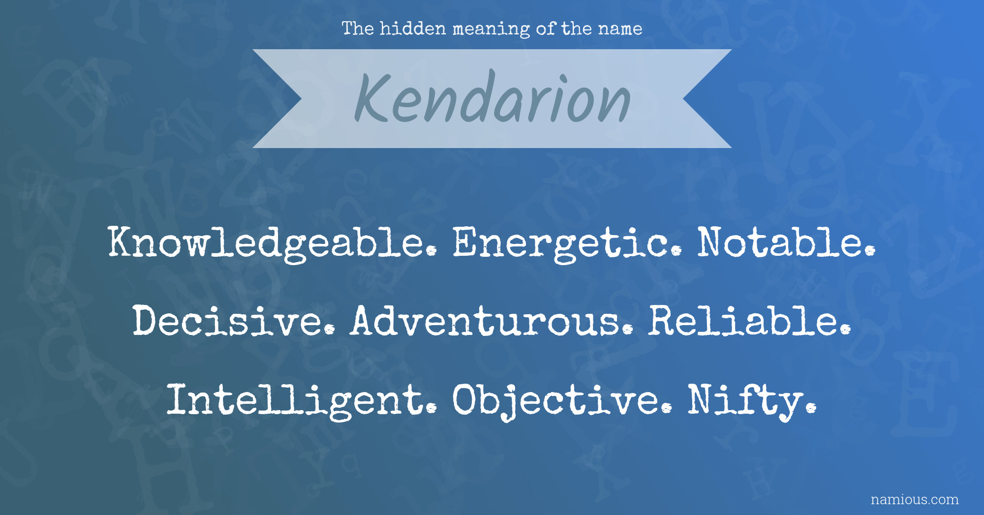 "Kendarion is a knowledgeable, energetic, notable, decisive, adventurous, reliable, intelligent, objective and nifty person."