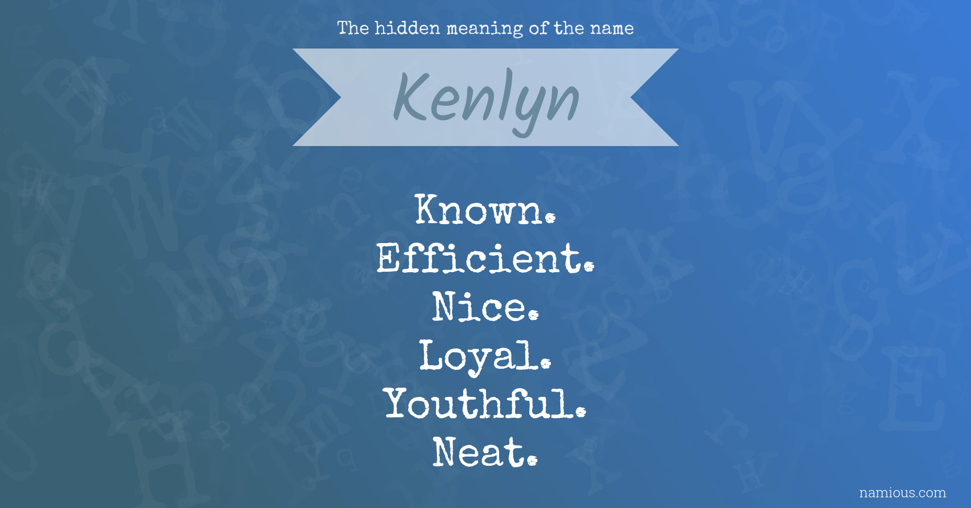 "Kenlyn is a known, efficient, nice, loyal, youthful and neat person."