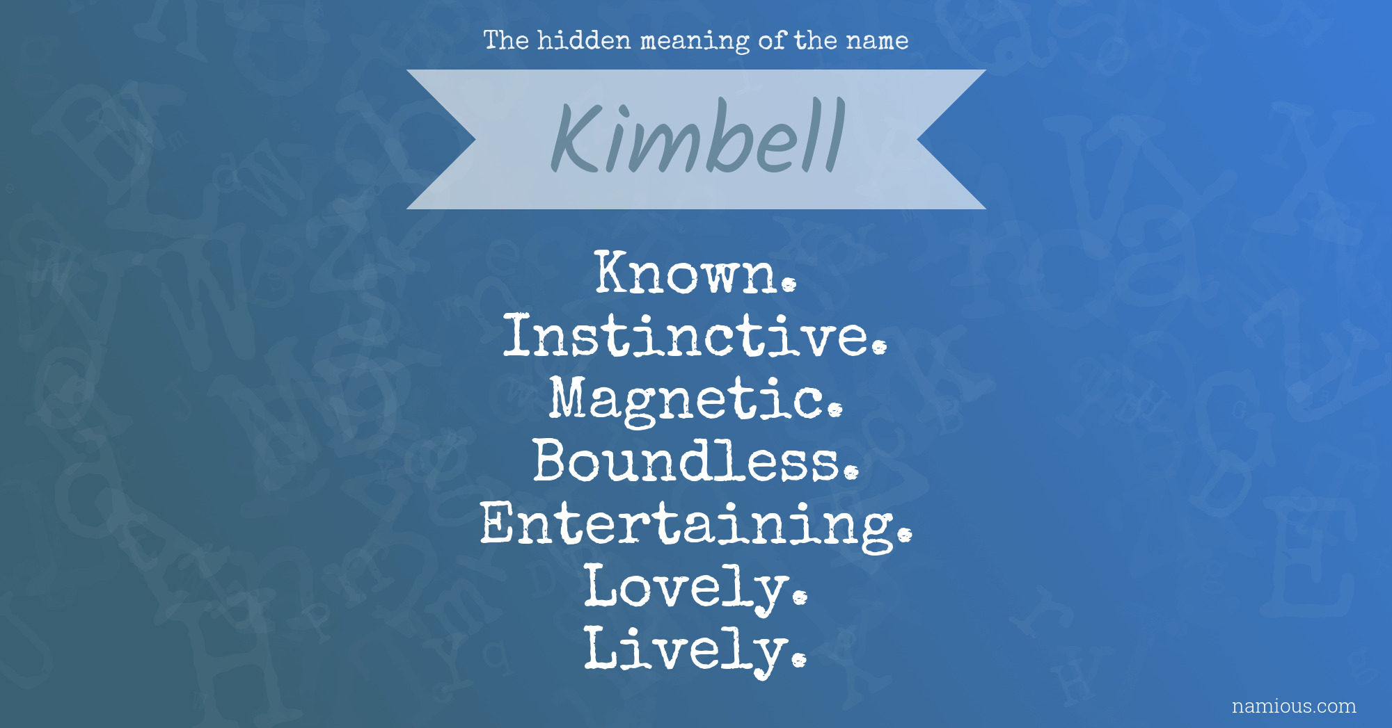 "Kimbell is a known, instinctive, magnetic, boundless, entertaining, lovely and lively person."