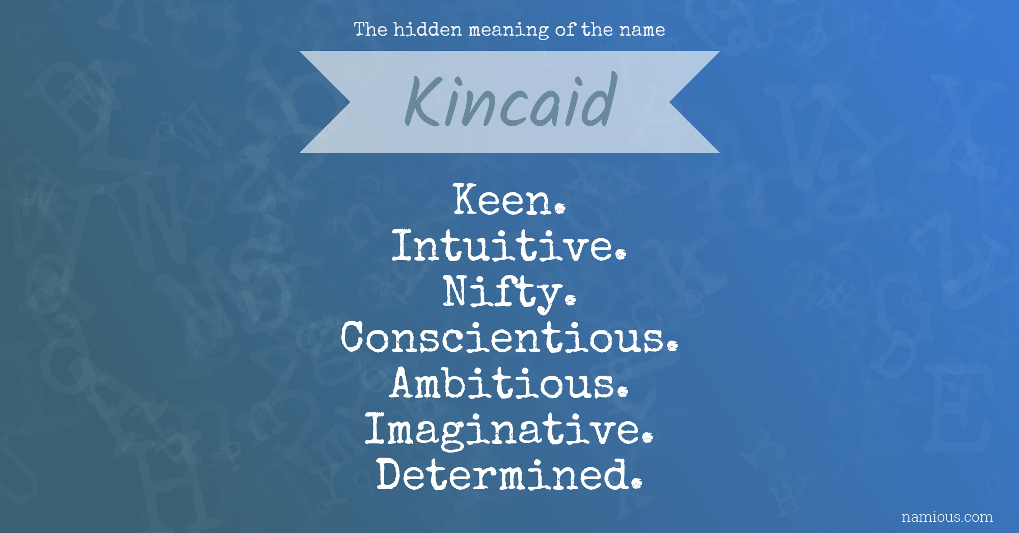 "Kincaid is a keen, intuitive, nifty, conscientious, ambitious, imaginative and determined person."
