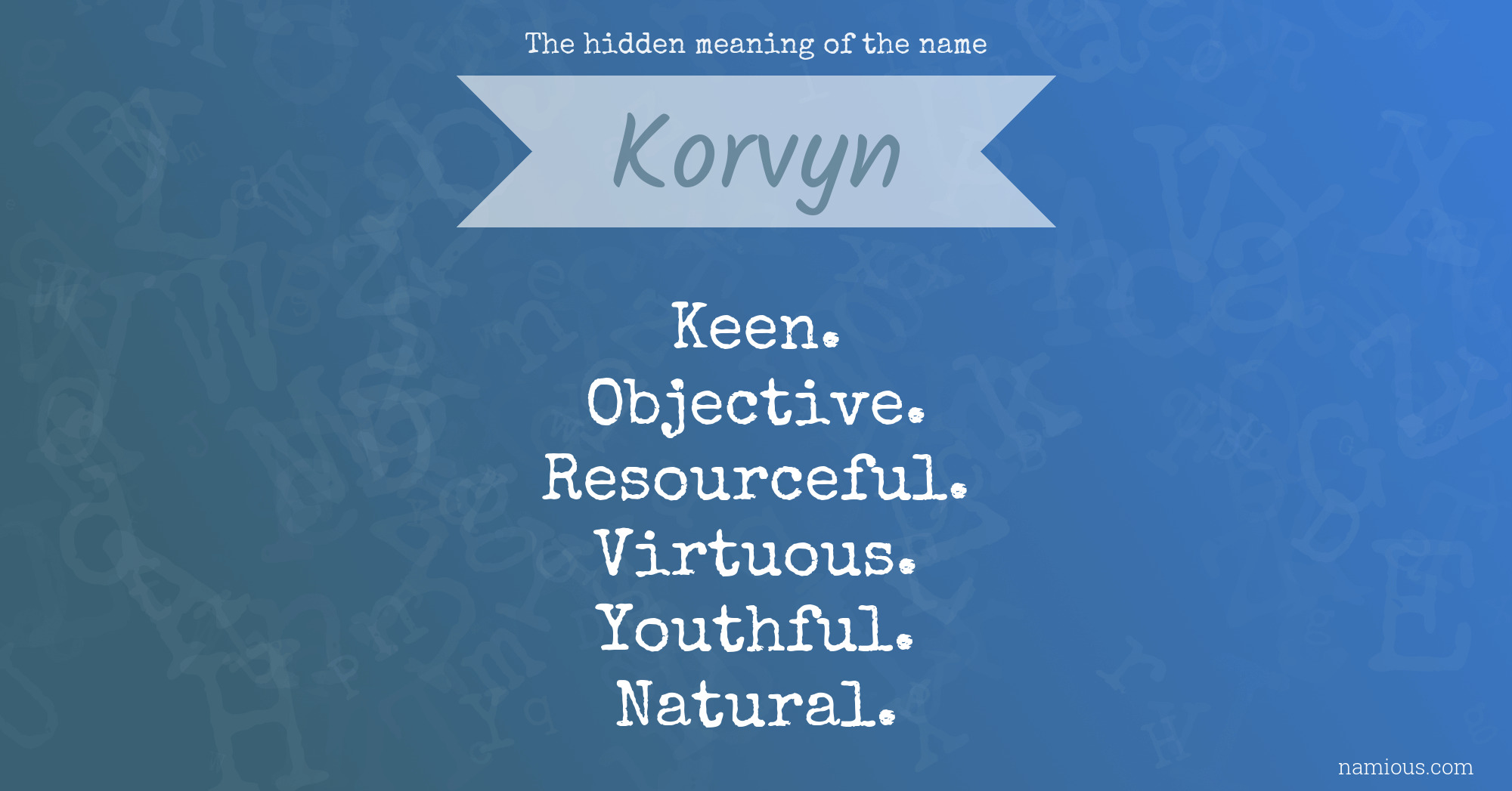 "Korvyn is a keen, objective, resourceful, virtuous, youthful and natural person."