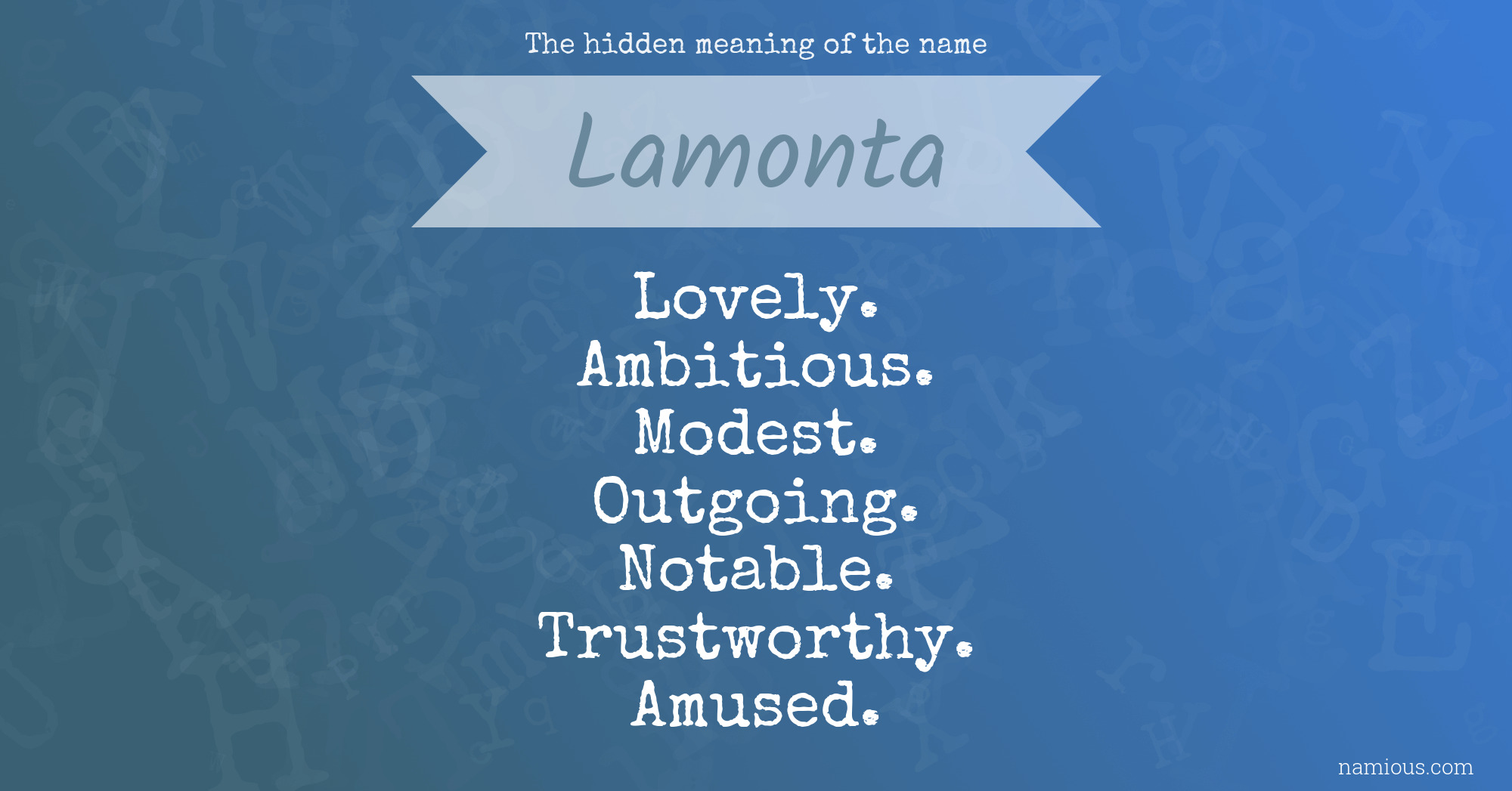 "Lamonta is a lovely, ambitious, modest, outgoing, notable, trustworthy and amused person."