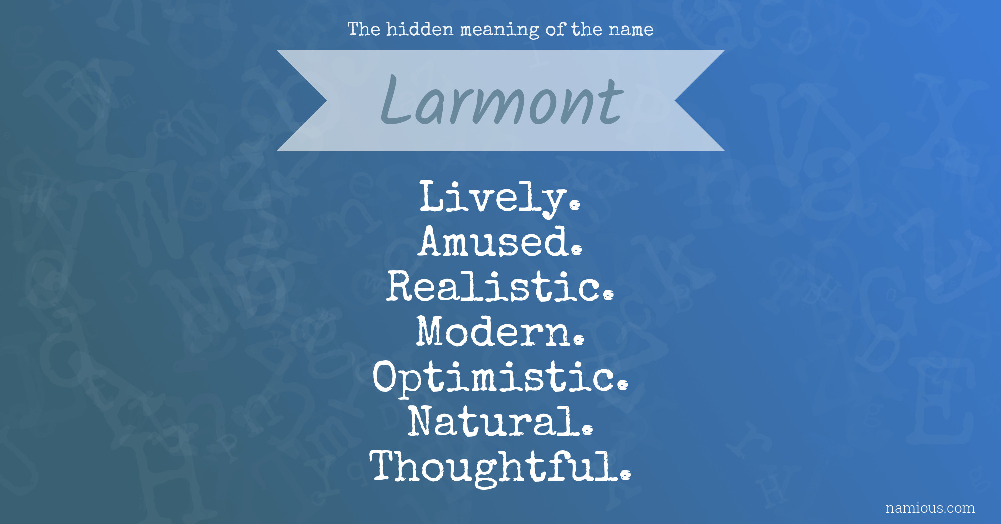 "Larmont is a lively, amused, realistic, modern, optimistic, natural and thoughtful person."
