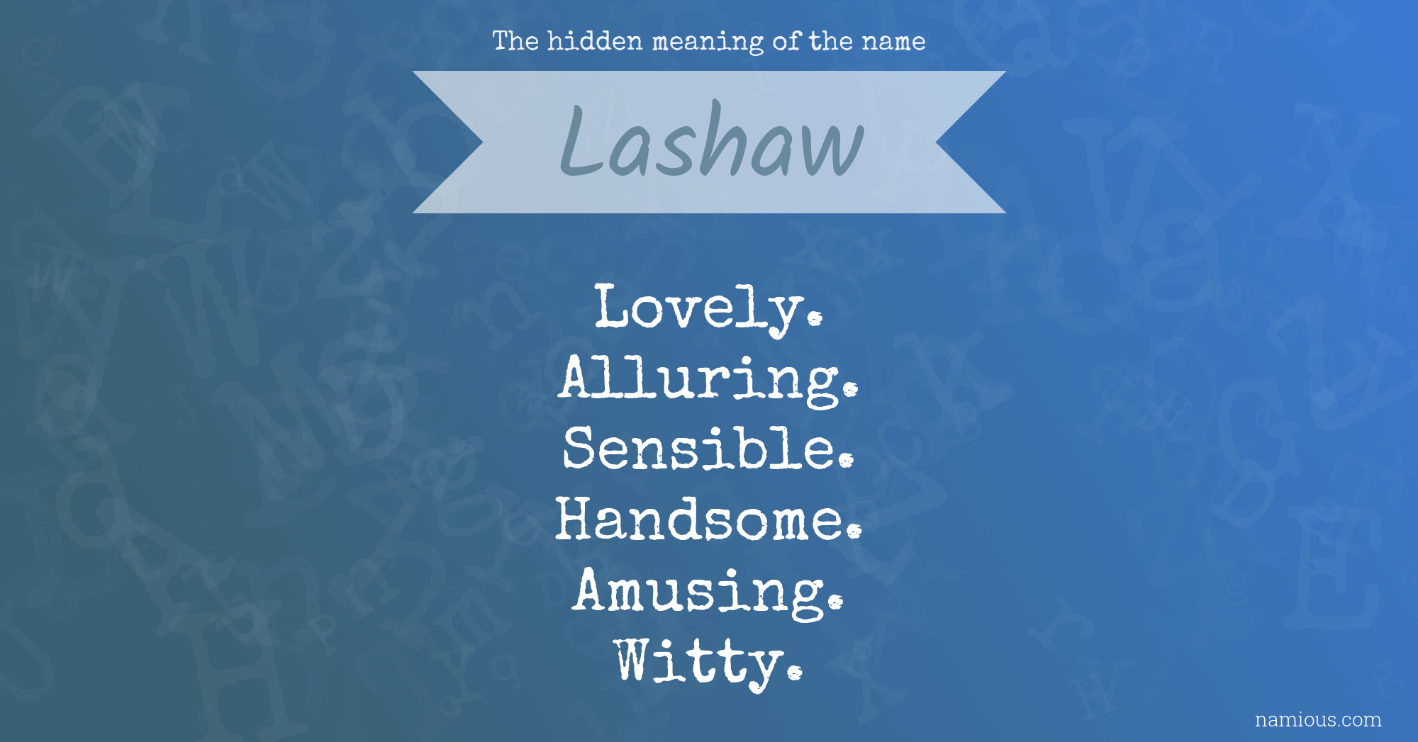 "Lashaw is a lovely, alluring, sensible, handsome, amusing and witty person."