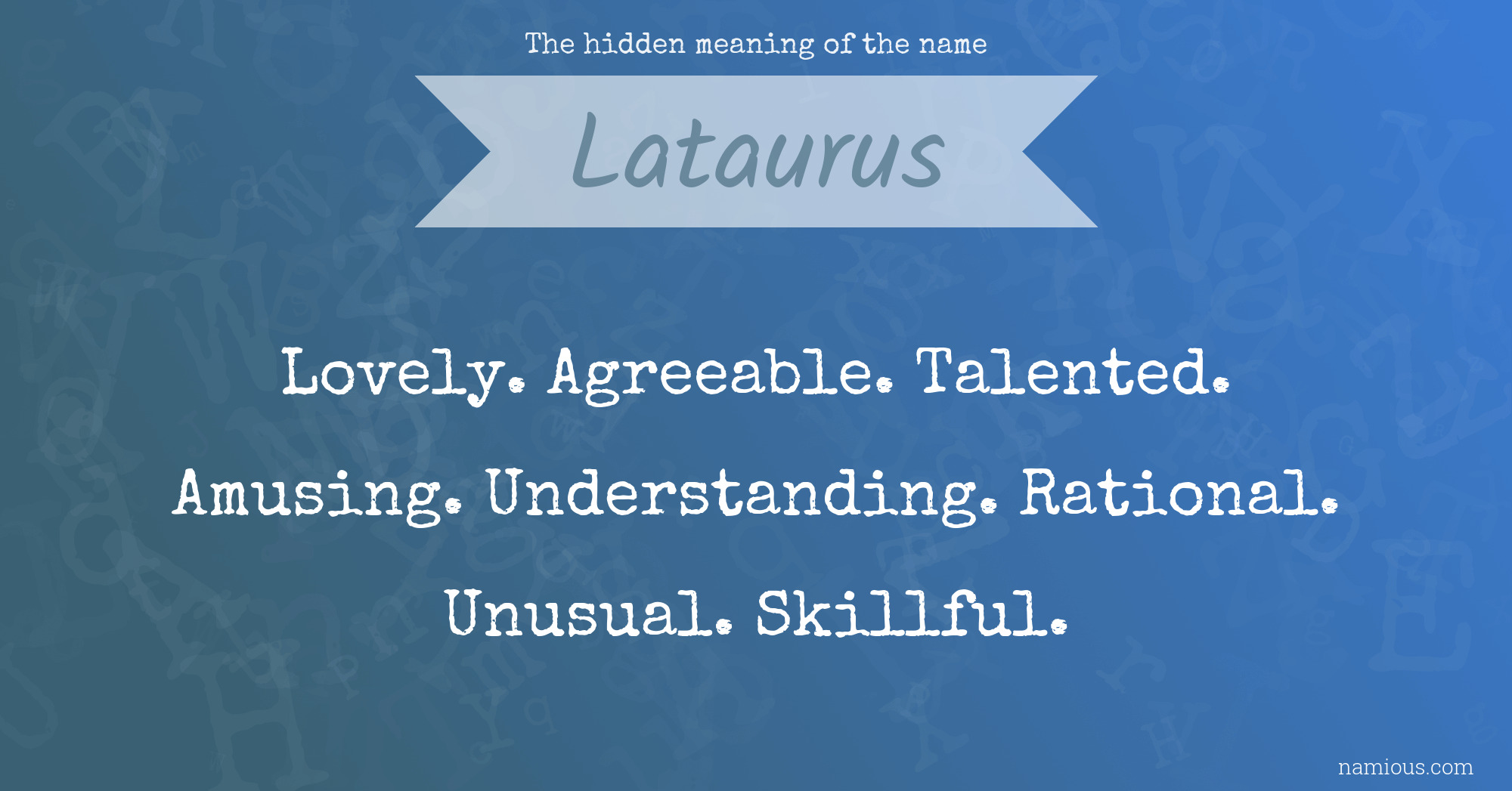 "Lataurus is a lovely, agreeable, talented, amusing, understanding, rational, unusual and skillful person."