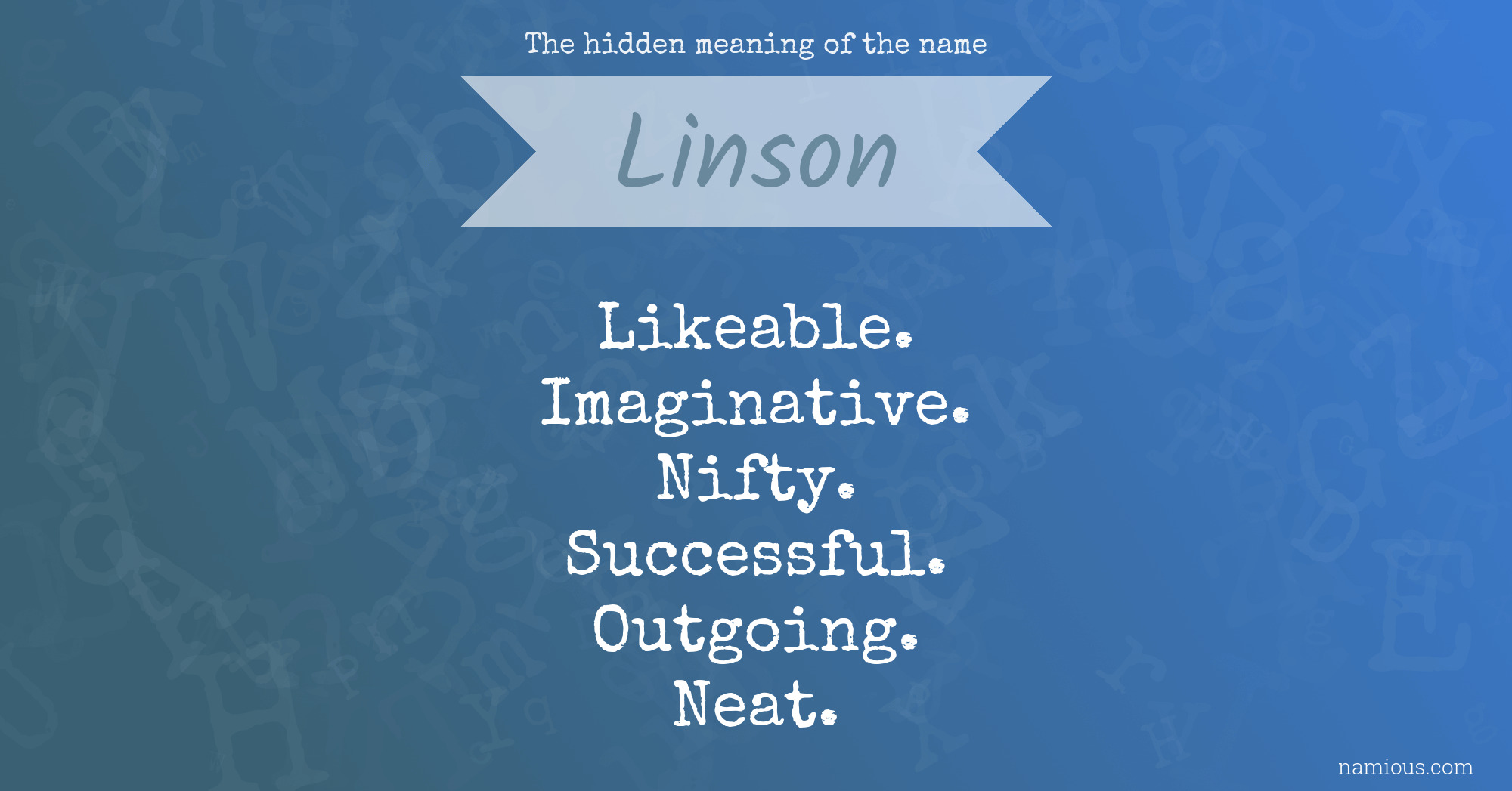 "Linson is a likeable, imaginative, nifty, successful, outgoing and neat person."