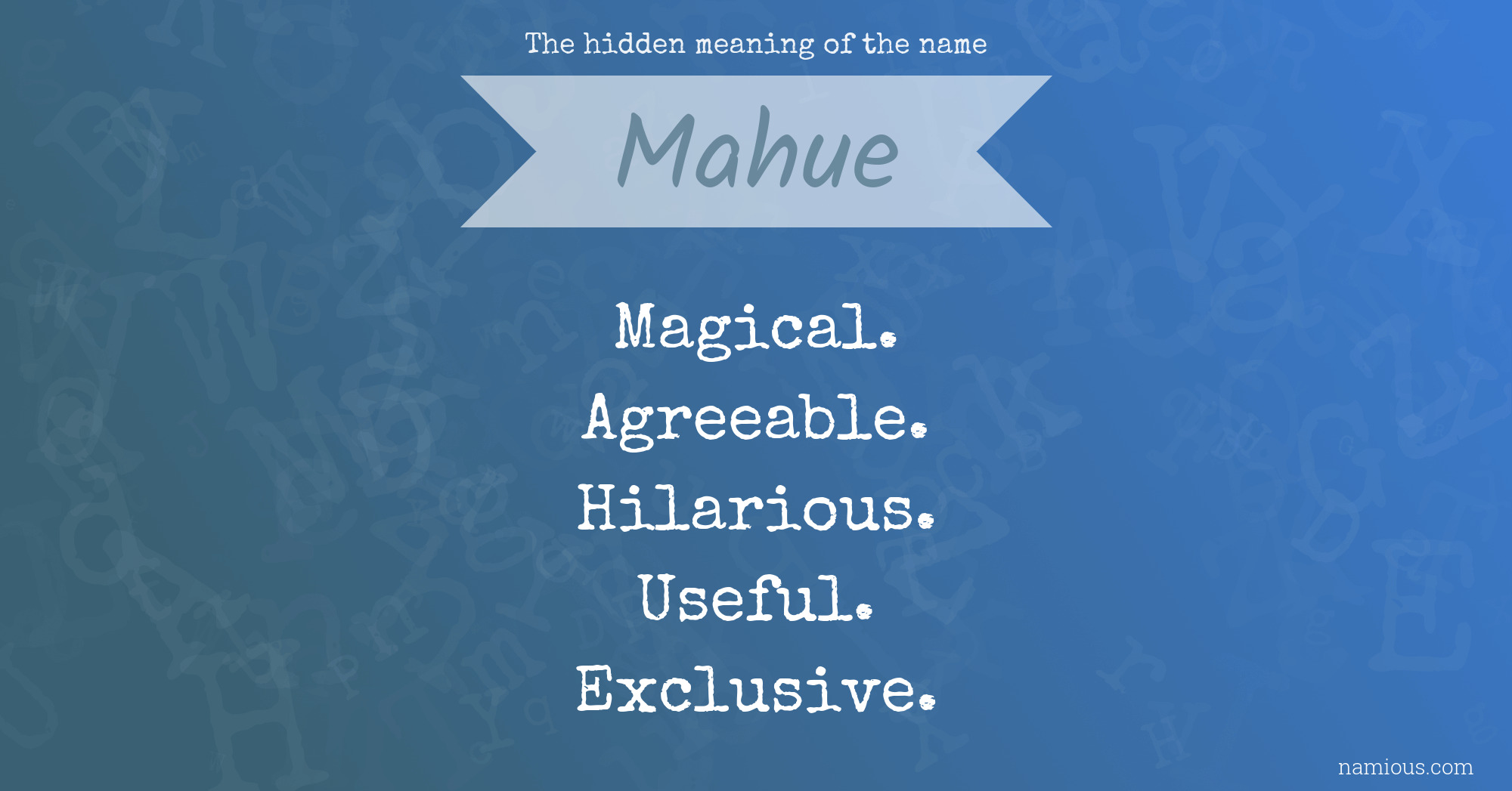 "Mahue is a magical, agreeable, hilarious, useful and exclusive person."