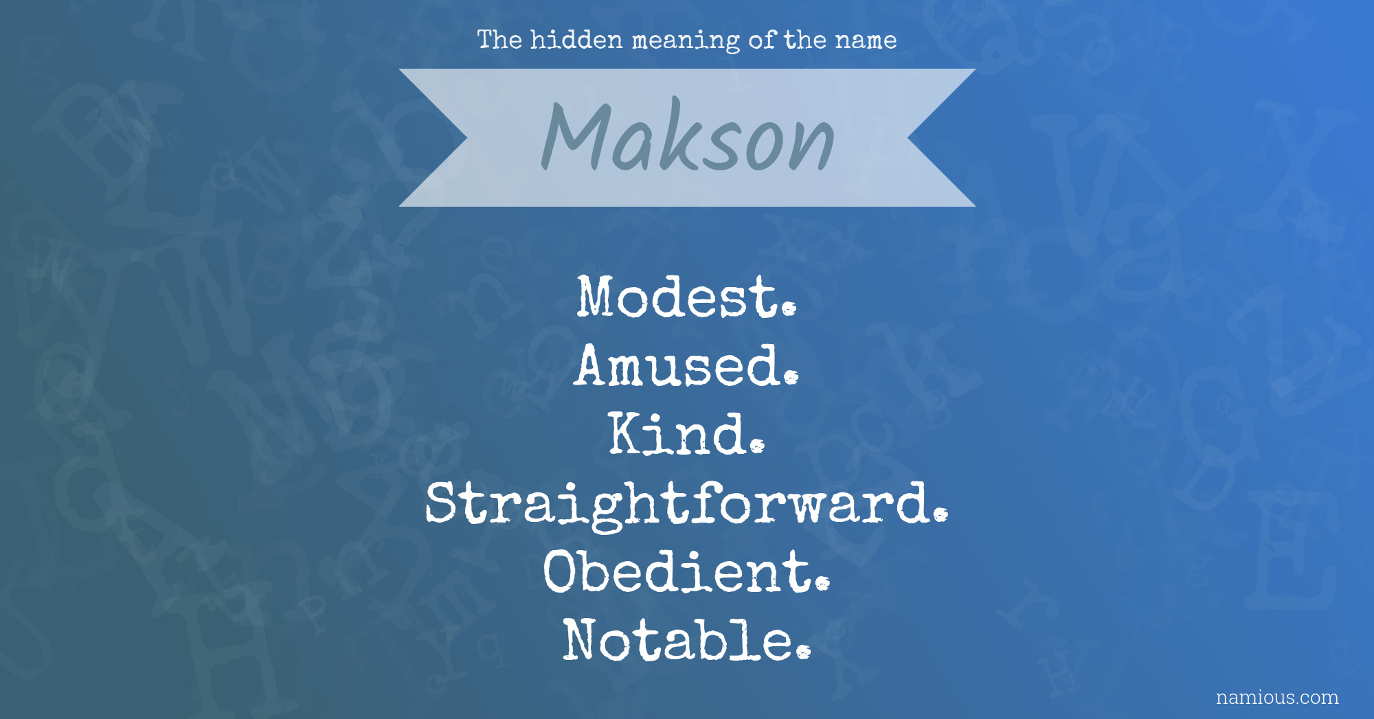 "Makson is a modest, amused, kind, straightforward, obedient and notable person."