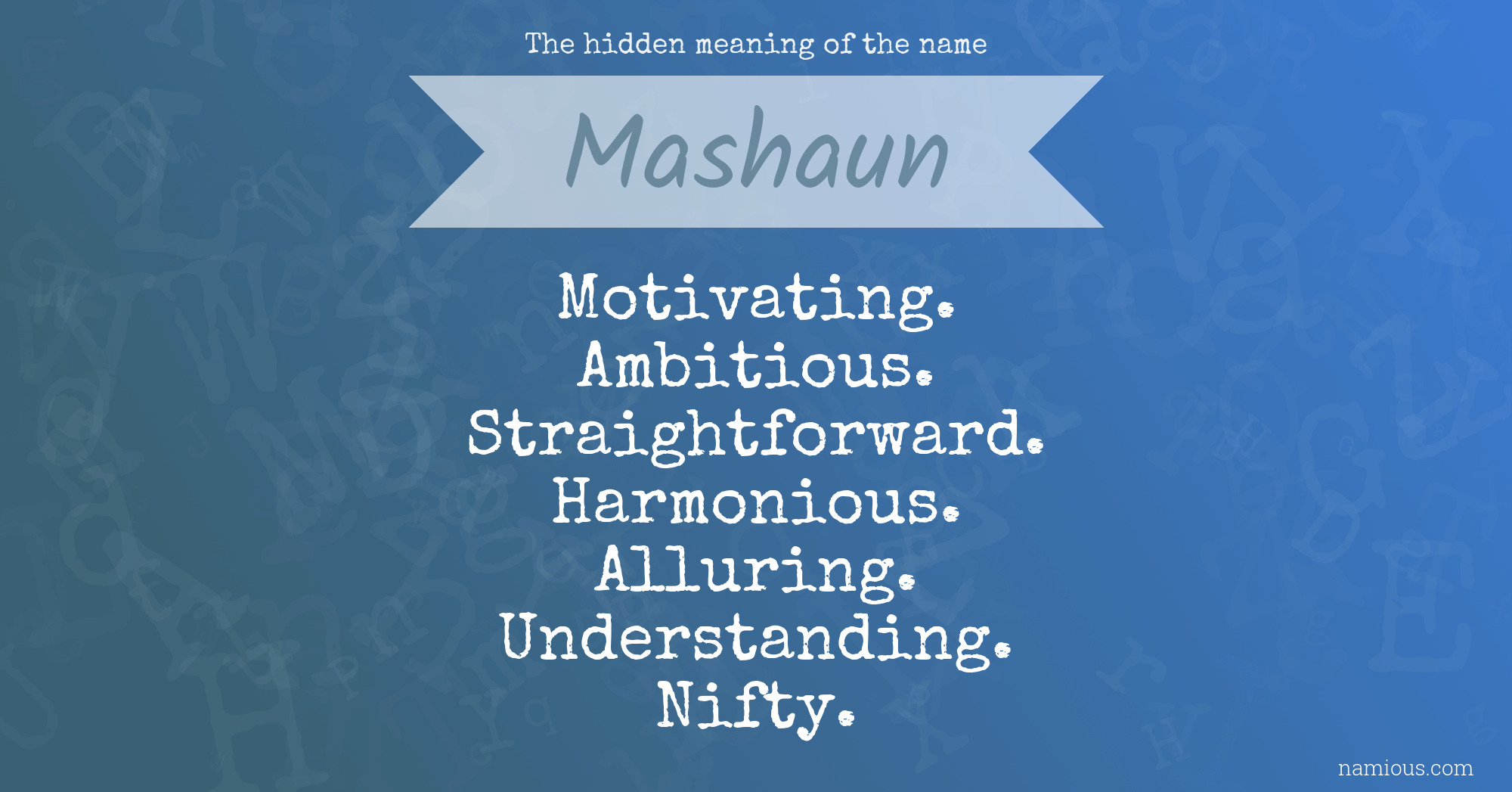 "Mashaun is a motivating, ambitious, straightforward, harmonious, alluring, understanding and nifty person."